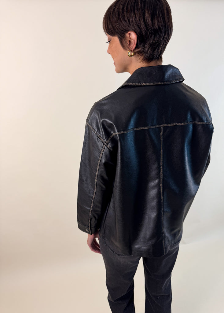 90's Oversized Faux Leather Jacket- Black