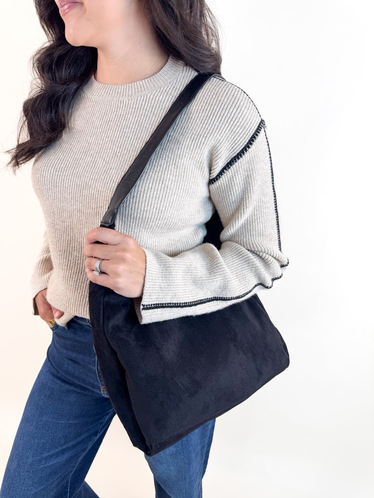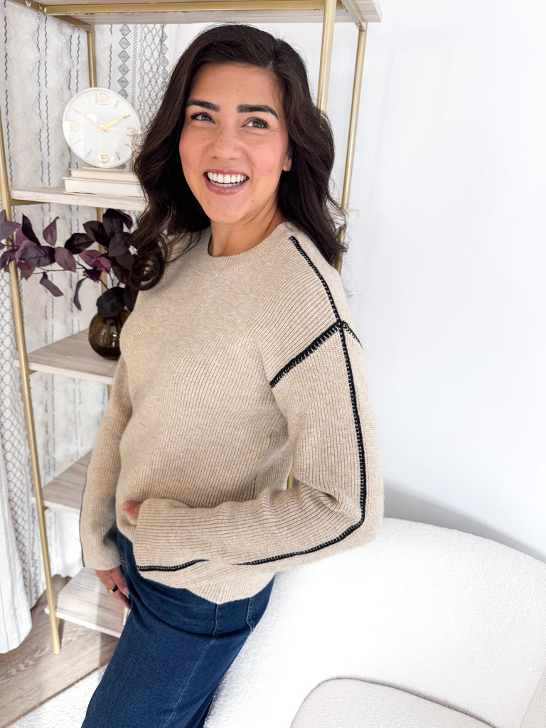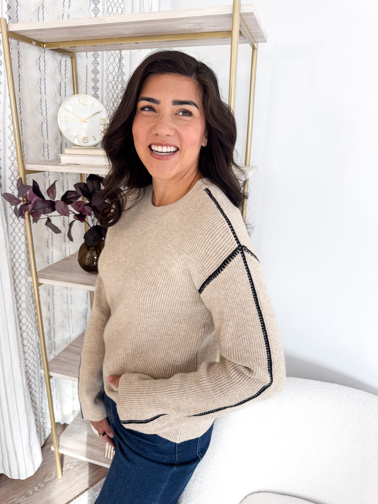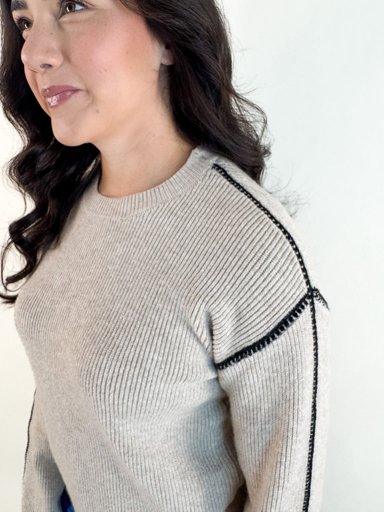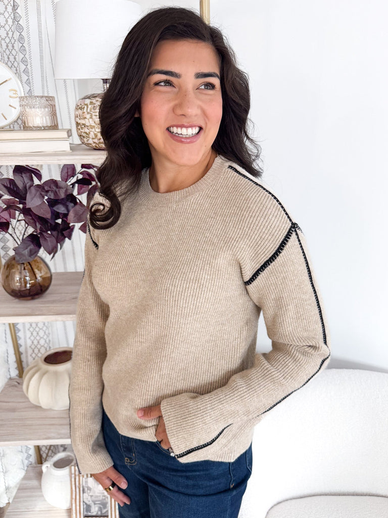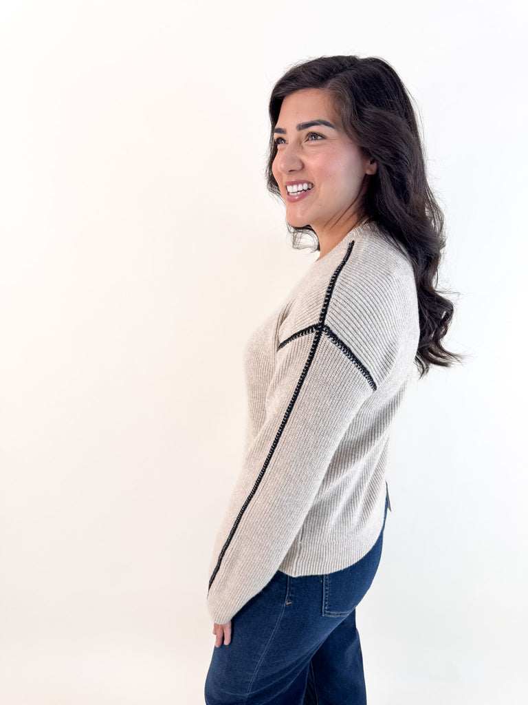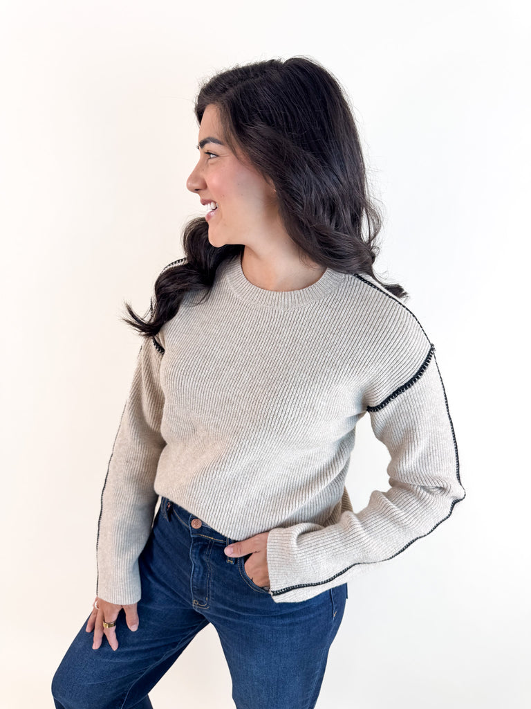 This so soft sweater is sure to be your go-to this season, featured in a relaxed drop shoulder fit with contrasting pipping detail, designed in a ribbed knit fabrication.