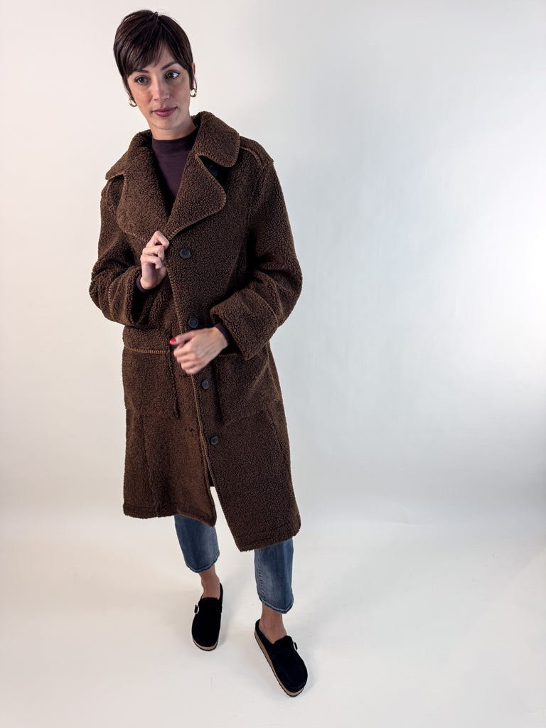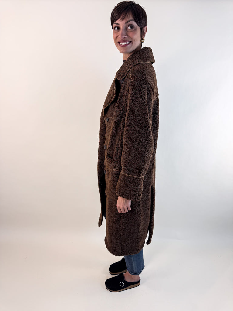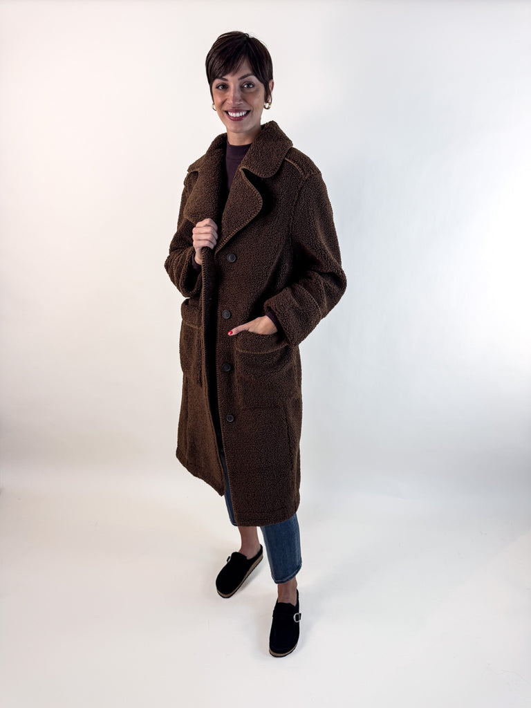 If we fell in love with a coat, it might the Sema. Our Sema UGGfluff Coat is a full-length coat made with double-knit plush fleece and a full lining. From the oversized collar to the contrast stitching, wearing this is the most comfortable way you've ever made a statement.
