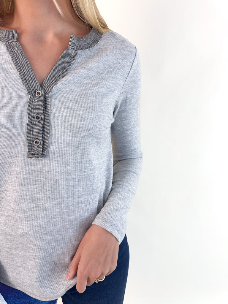 Jeslyn Color Trimmed Button Henley
