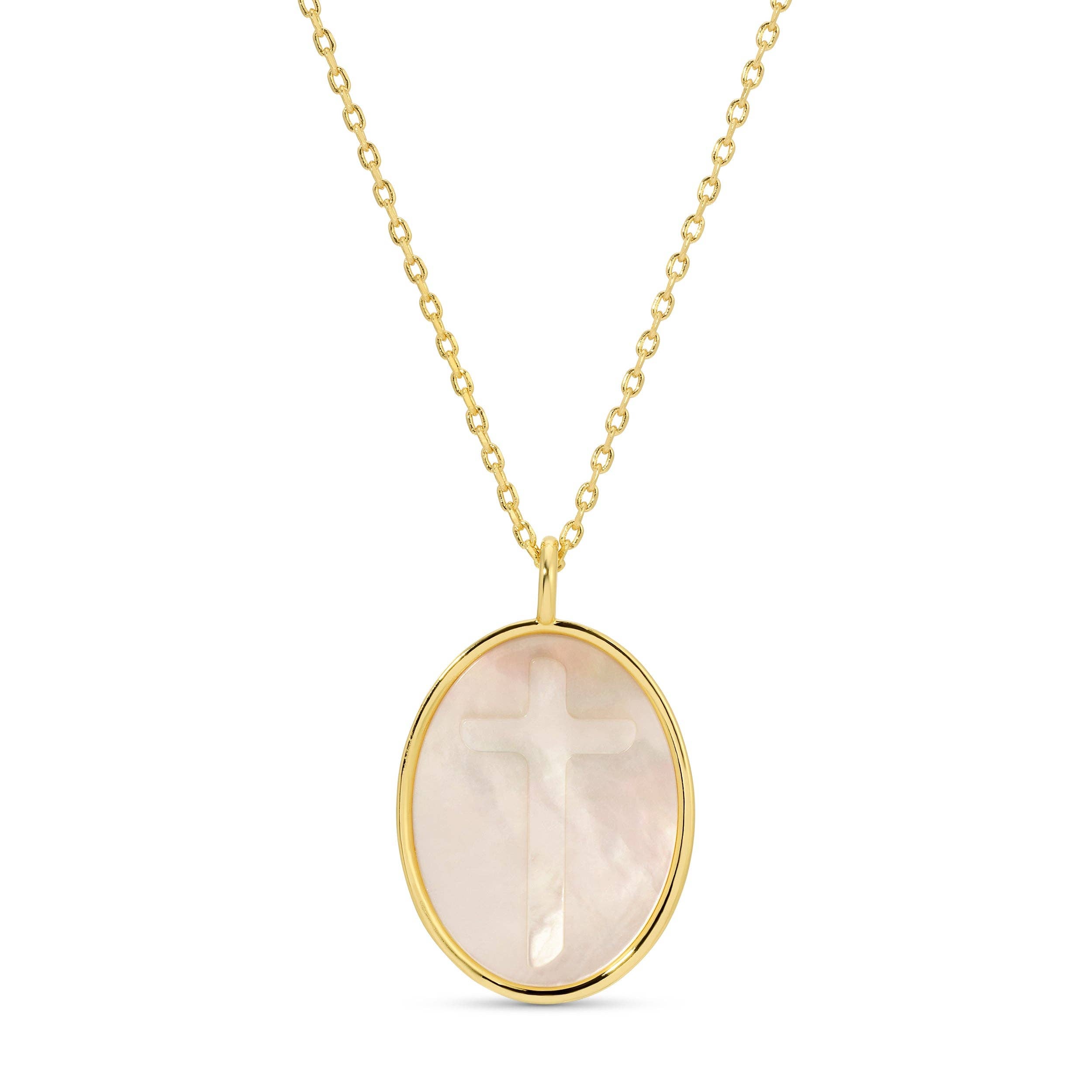 The Shell Pendant Necklace has become a favorite! The Cross Etched Shell Pendant can be worn alone or layered with more.