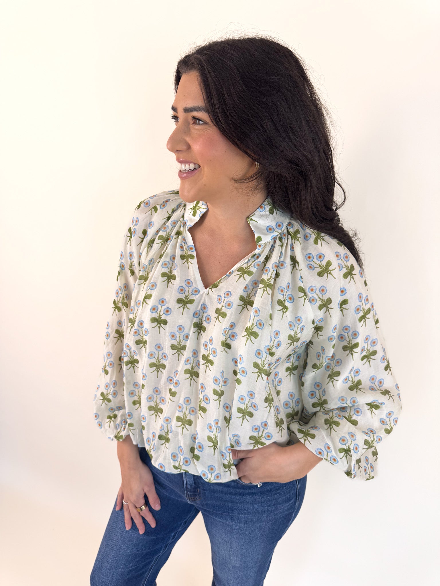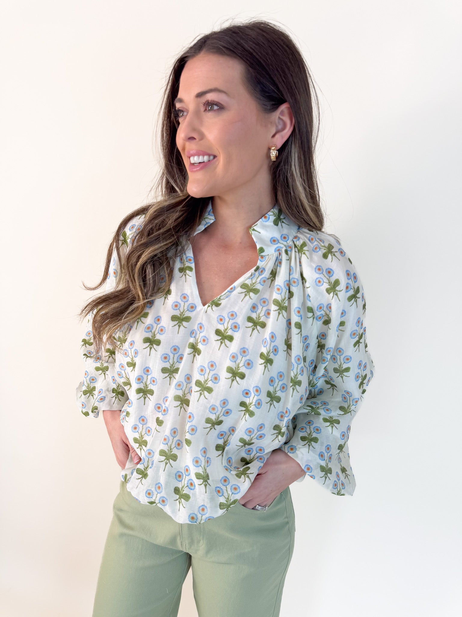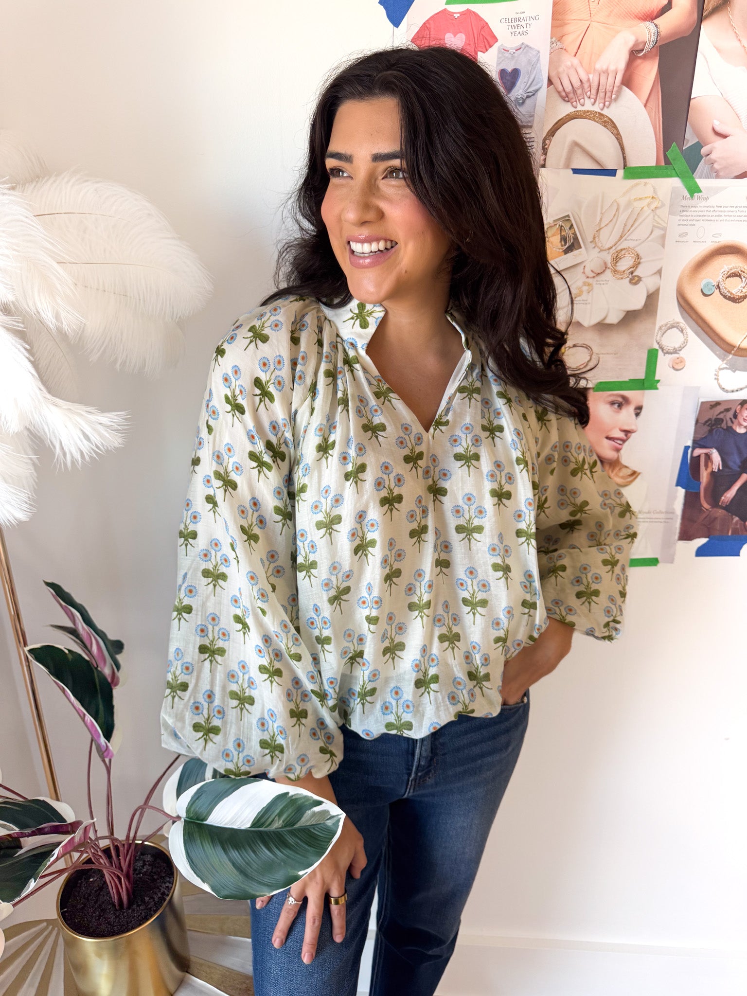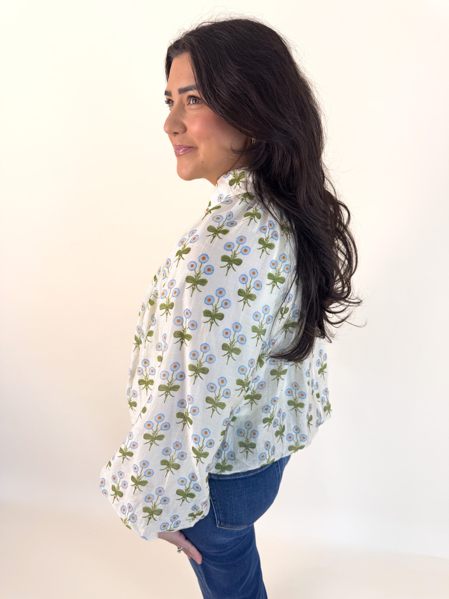Brighten your wardrobe with this charming blouse featuring a bold floral block pattern. Perfect for casual outings or layering, it brings effortless style and a pop of color to any ensemble.