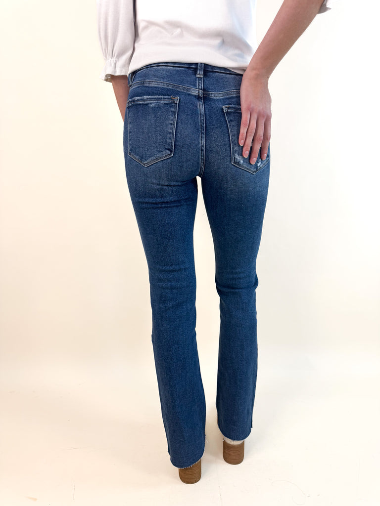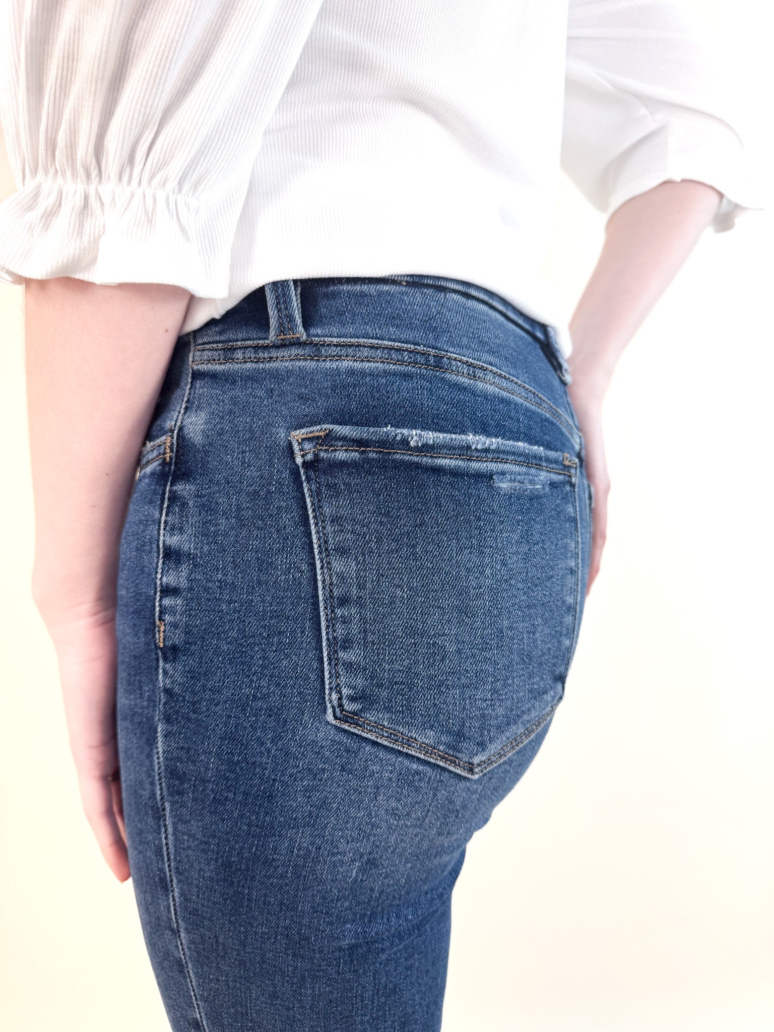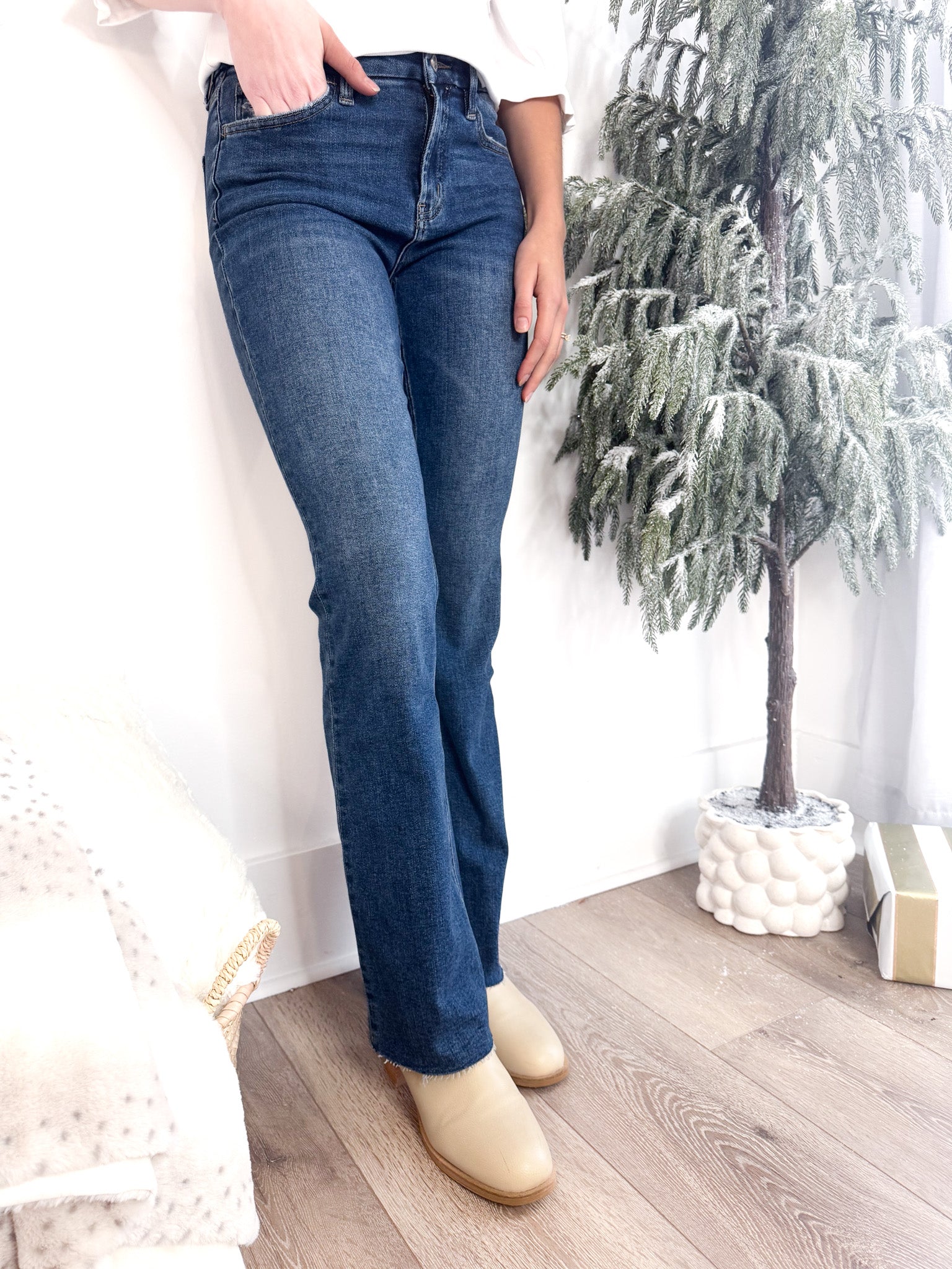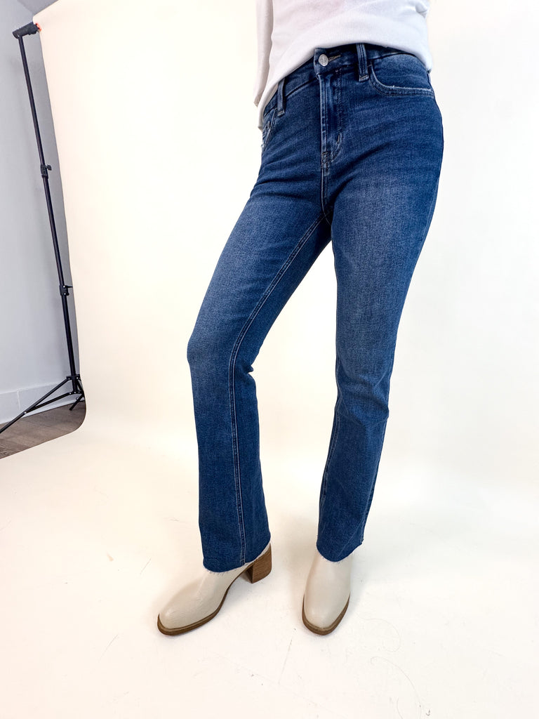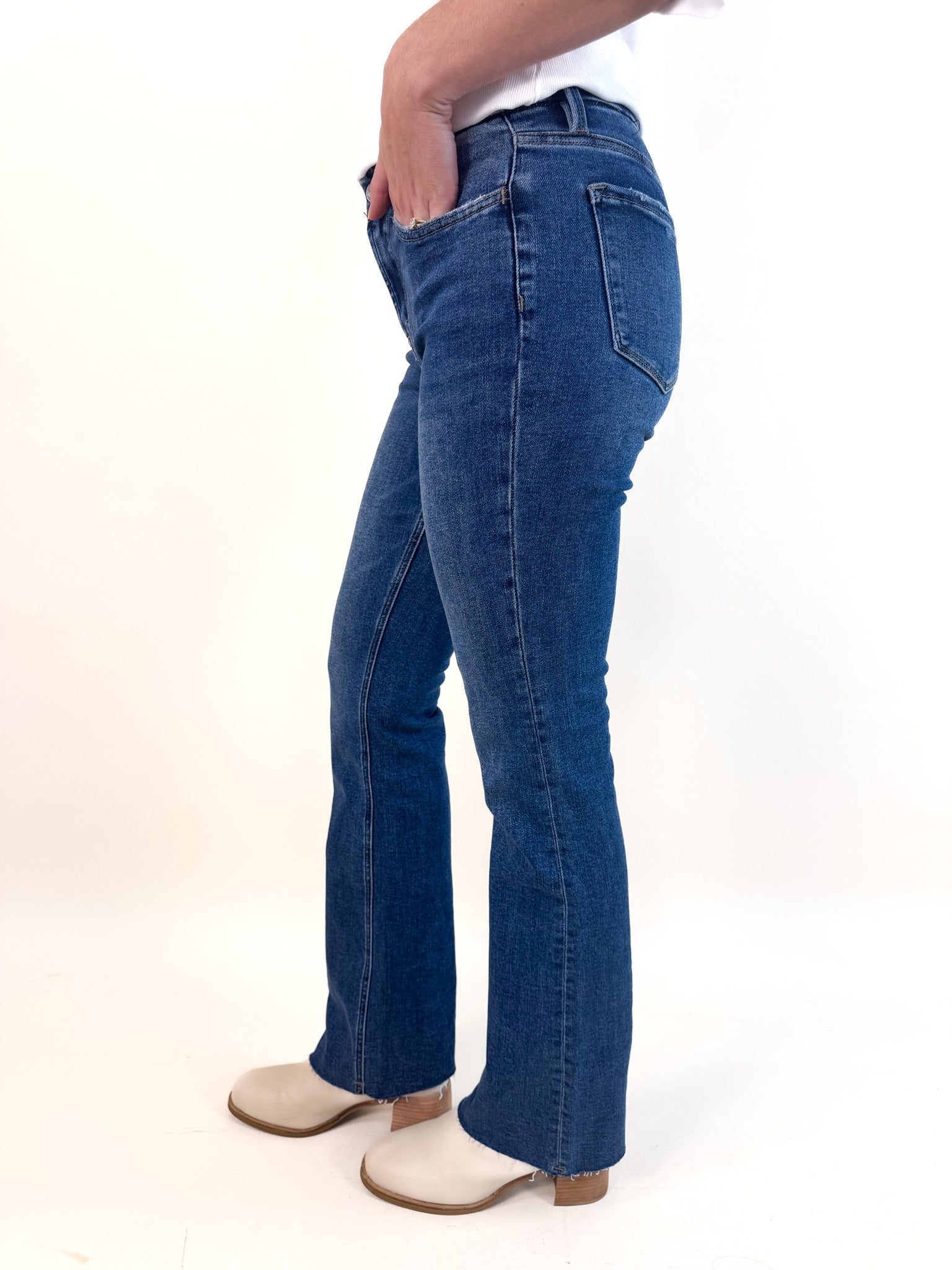 Lani High Rise Bootcut Jeans feature a seamless waistband and comfort stretch denim for all-day wear. The high-rise cut, clean raw hem, and full-length bootcut silhouette deliver a modern, flattering fit.