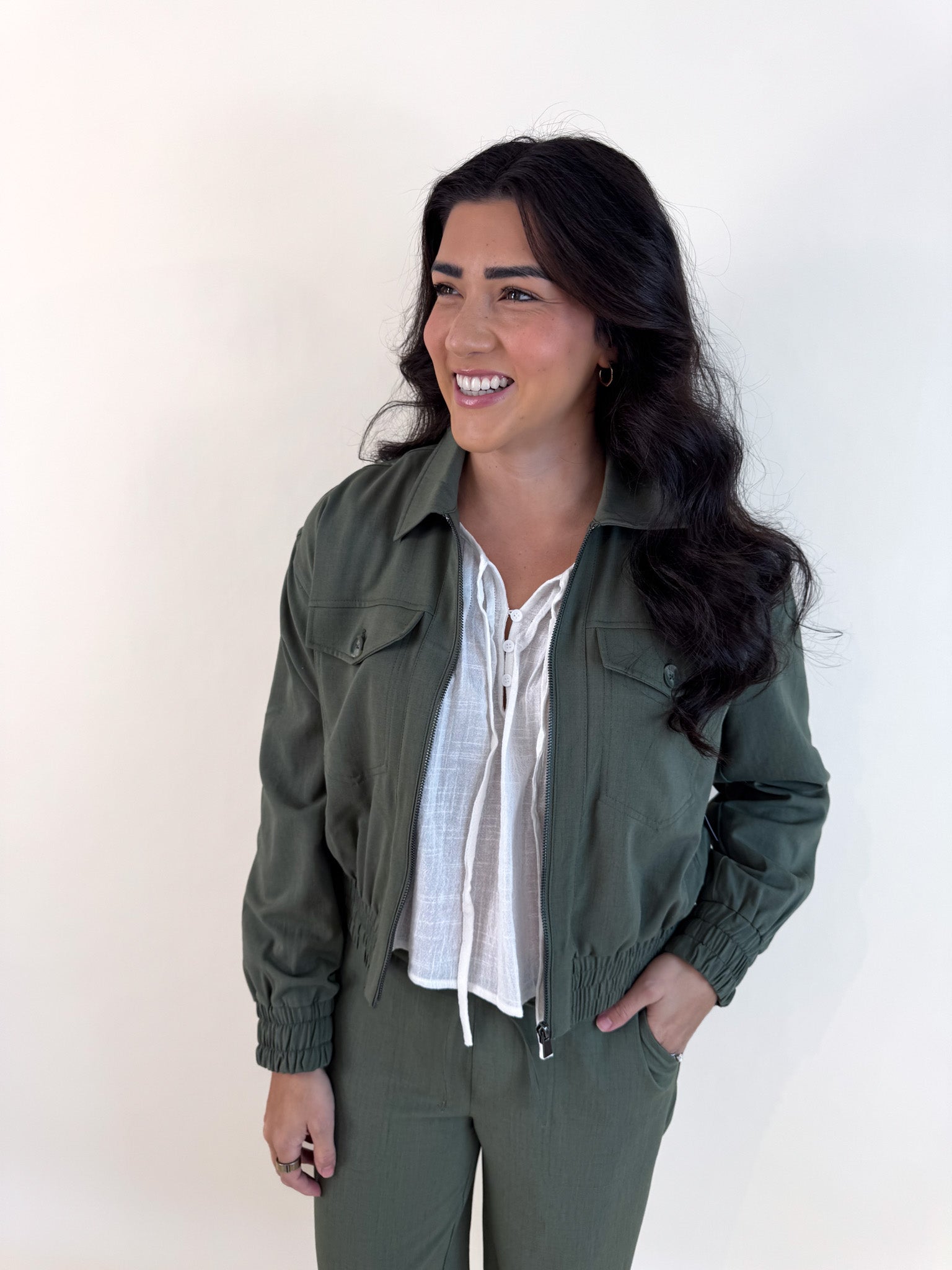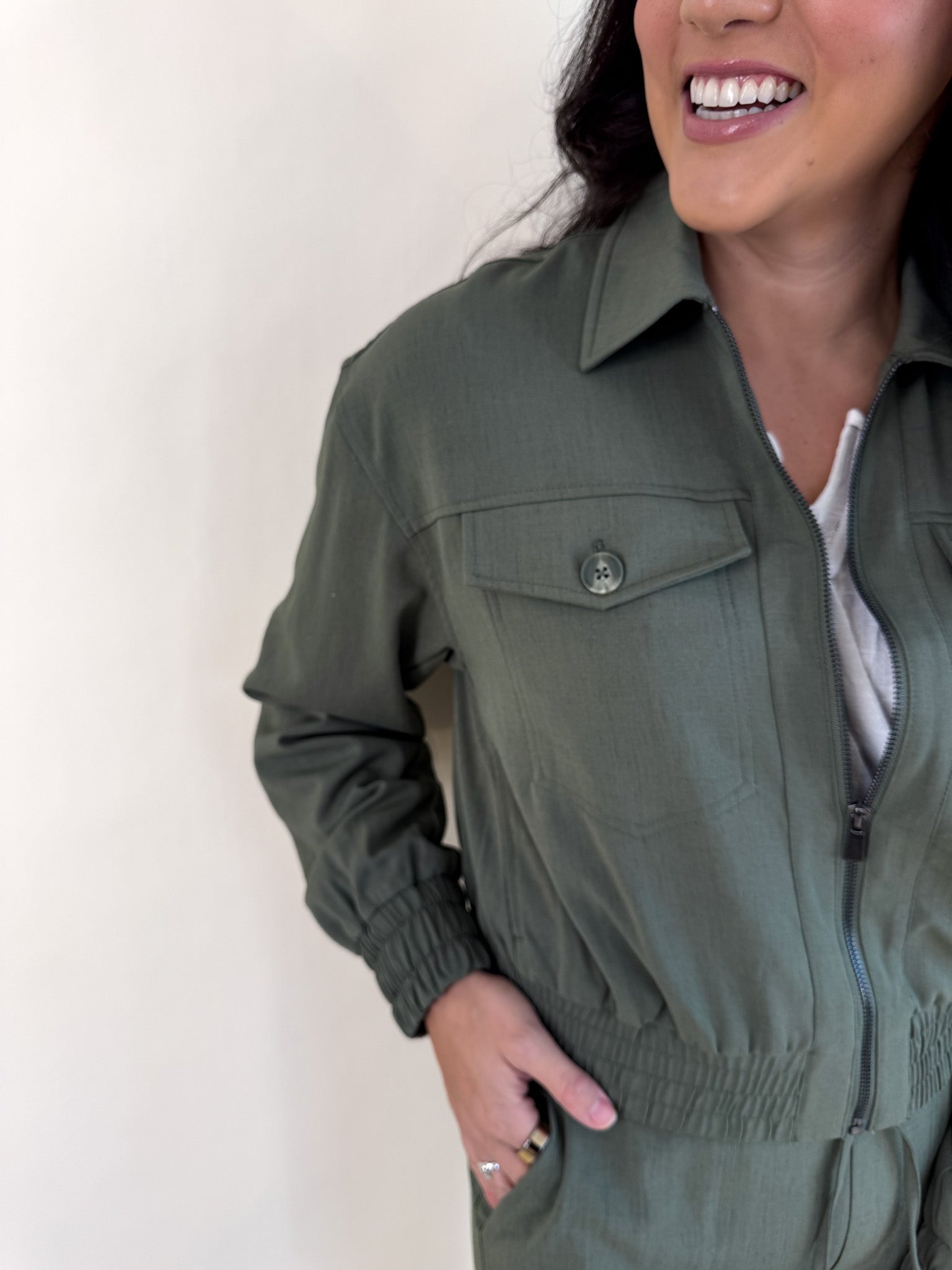 Featuring a cinched hem in our unique textured stretch woven fabric, this lightweight utility jacket boasts a stylish, edgy appearance. Experience the ultimate blend of fashion and function without sacrificing versatility.