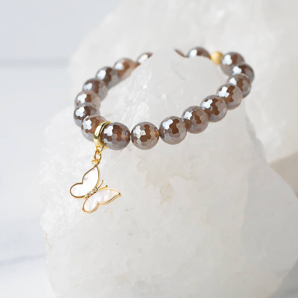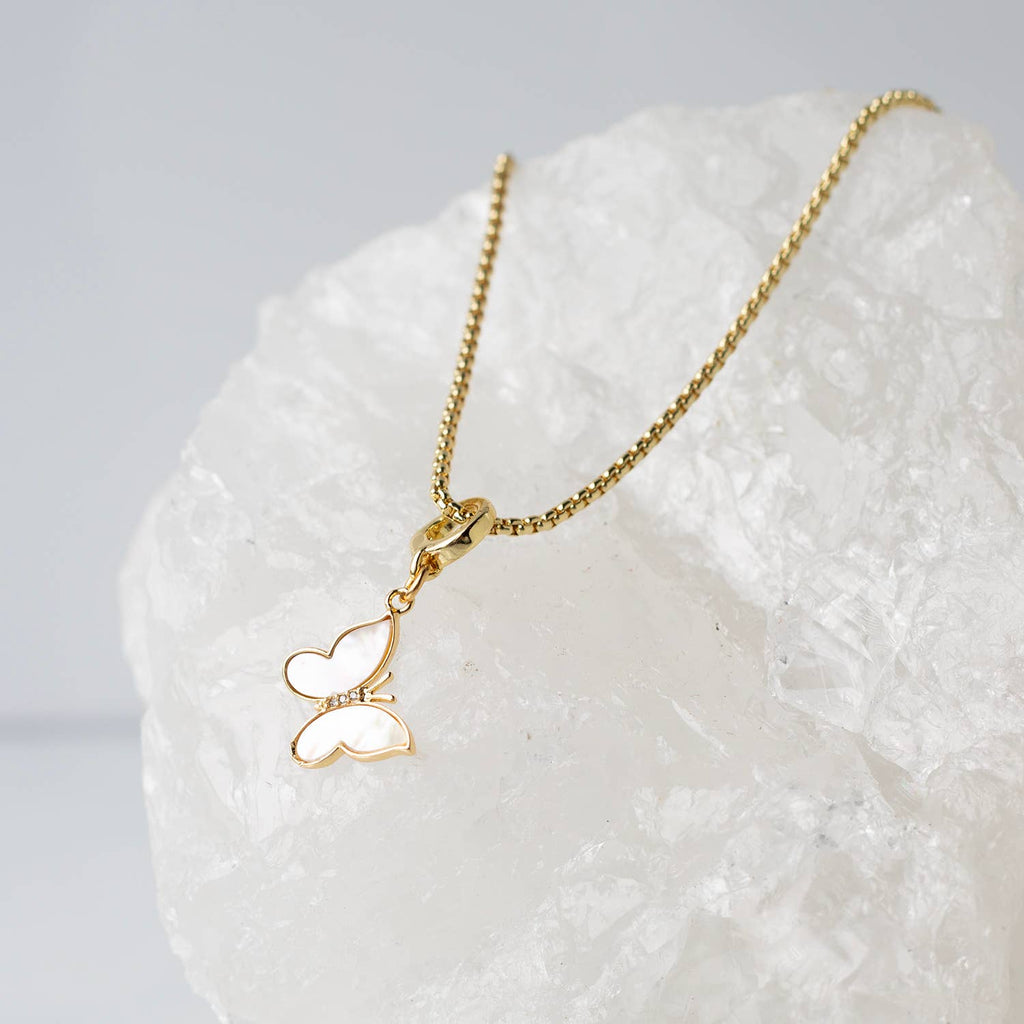 The butterfly is a symbol of transformation, freedom, and graceful change. Crafted with luminous mother of pearl, this charm captures the light—both literally and metaphorically. It's a delicate reminder to embrace growth, celebrate your journey, and let your spirit soar.