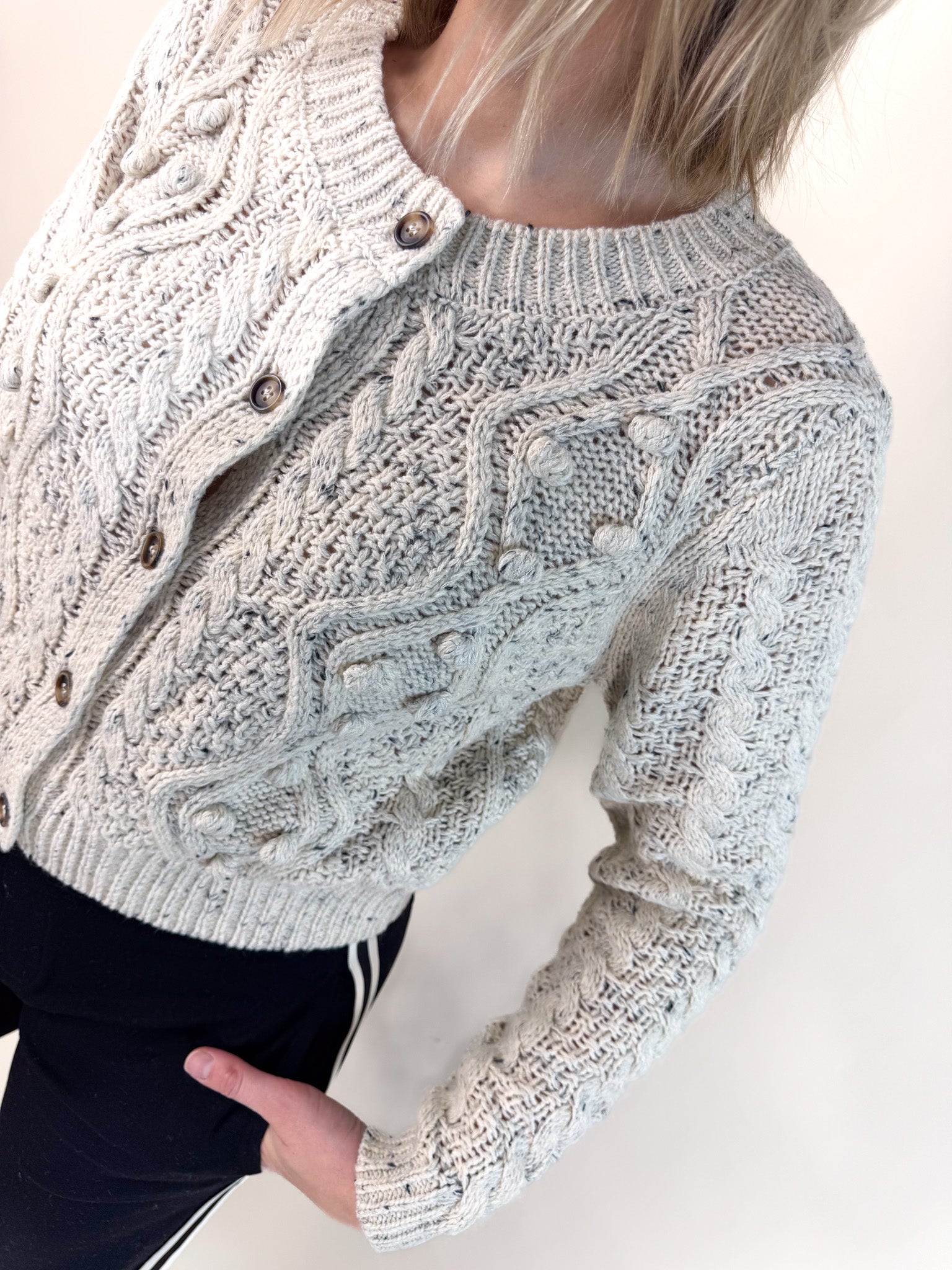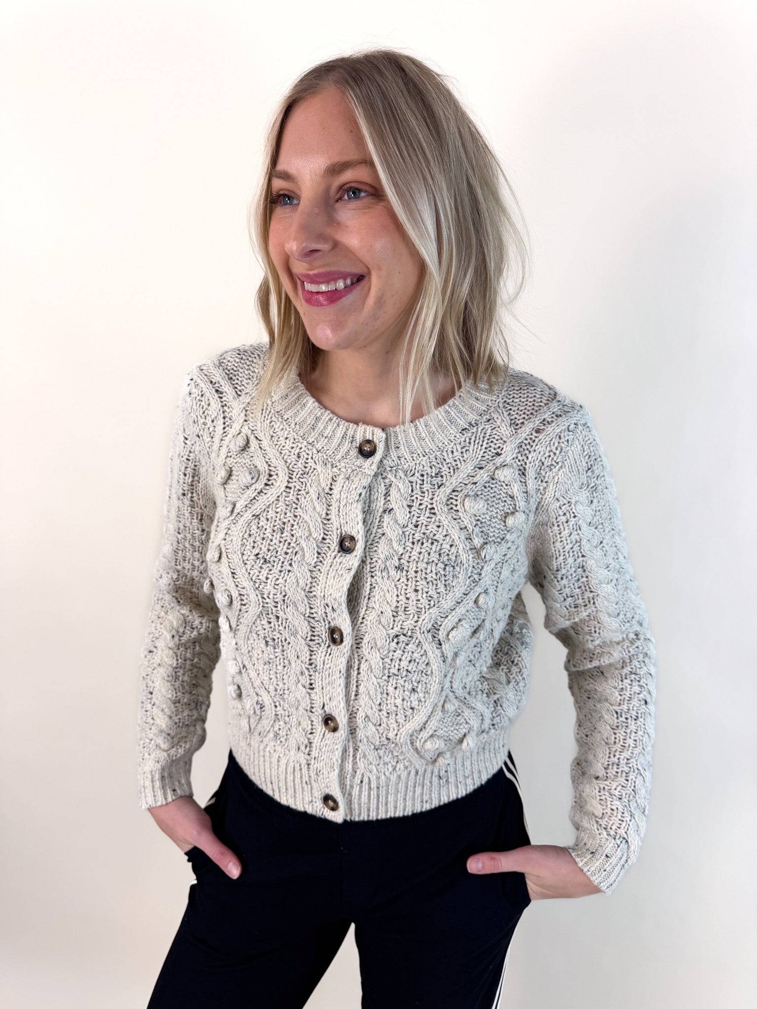 Elevate your everyday wardrobe with this sophisticated cable knit cardigan. The textured knit design adds visual interest and depth, while the relaxed fit ensures comfort without compromise. Layer it over basics for instant polish, or wear solo as a statement piece. A versatile essential that transitions seamlessly from season to season.