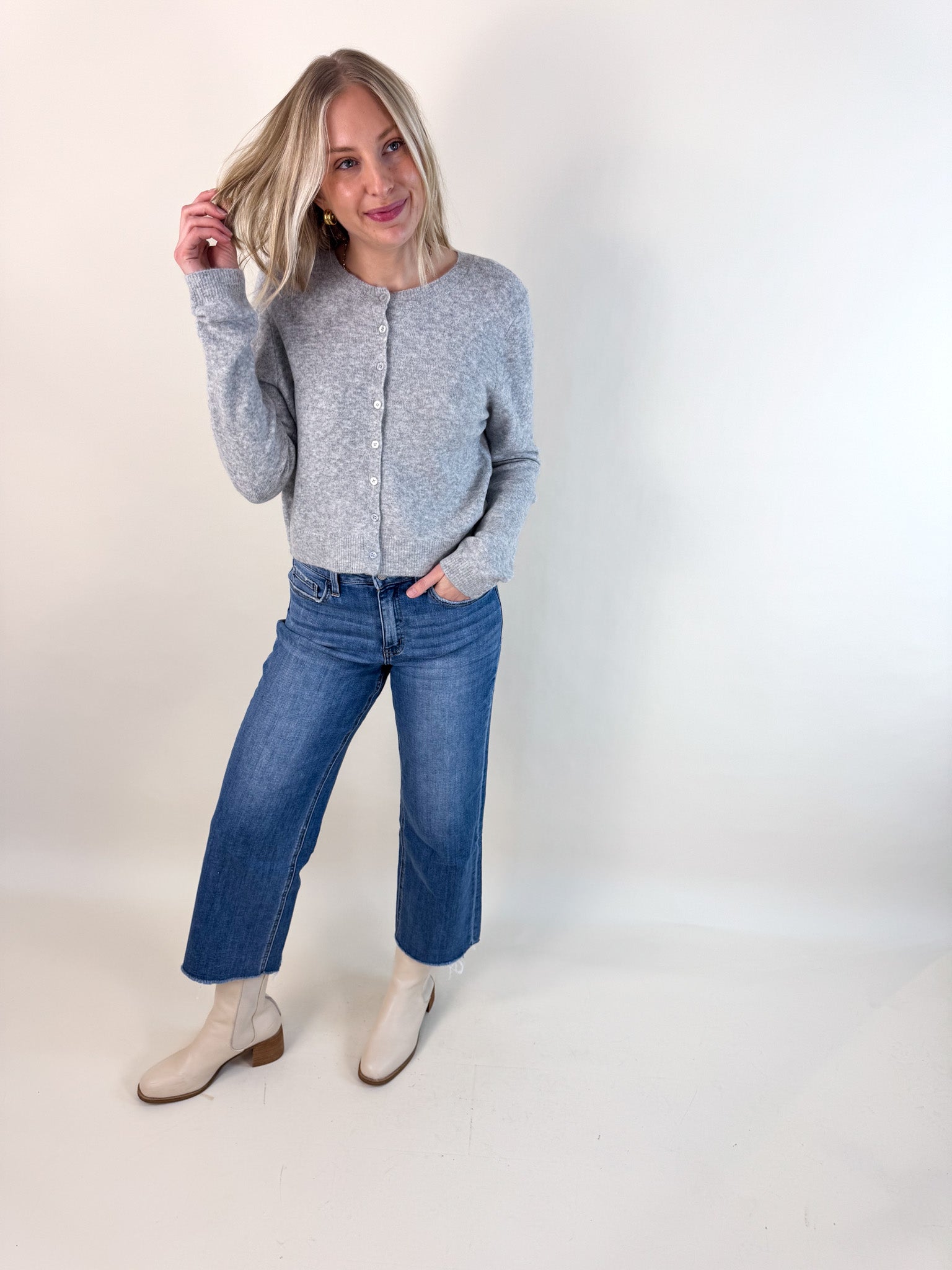 This relaxed crewneck cardigan is made from cozy sweater yarns with an easy button-up front that’s perfect for layering. Whether tossed over a tank or worn solo, it’s the ideal go-to for cozy, casual days.