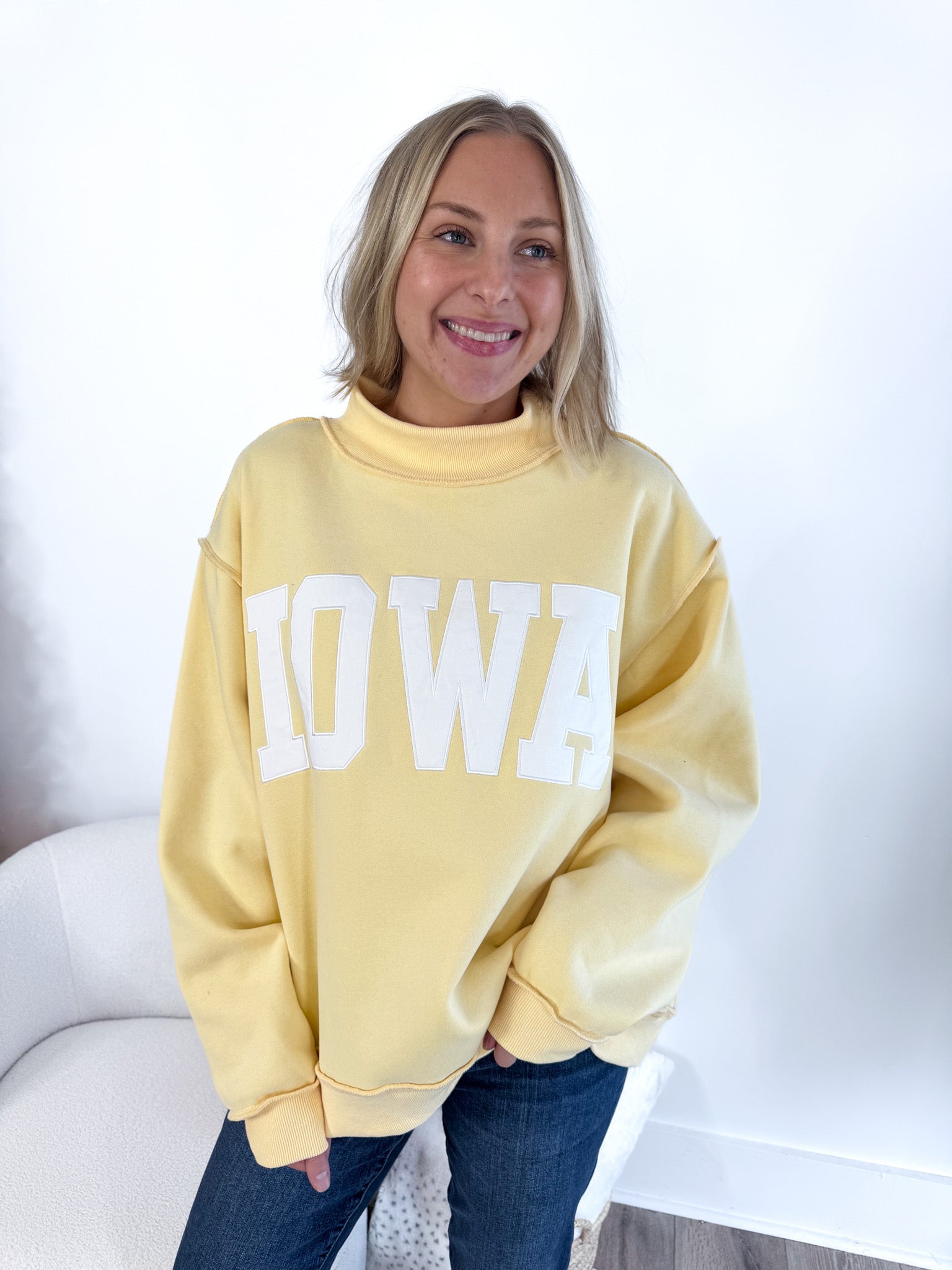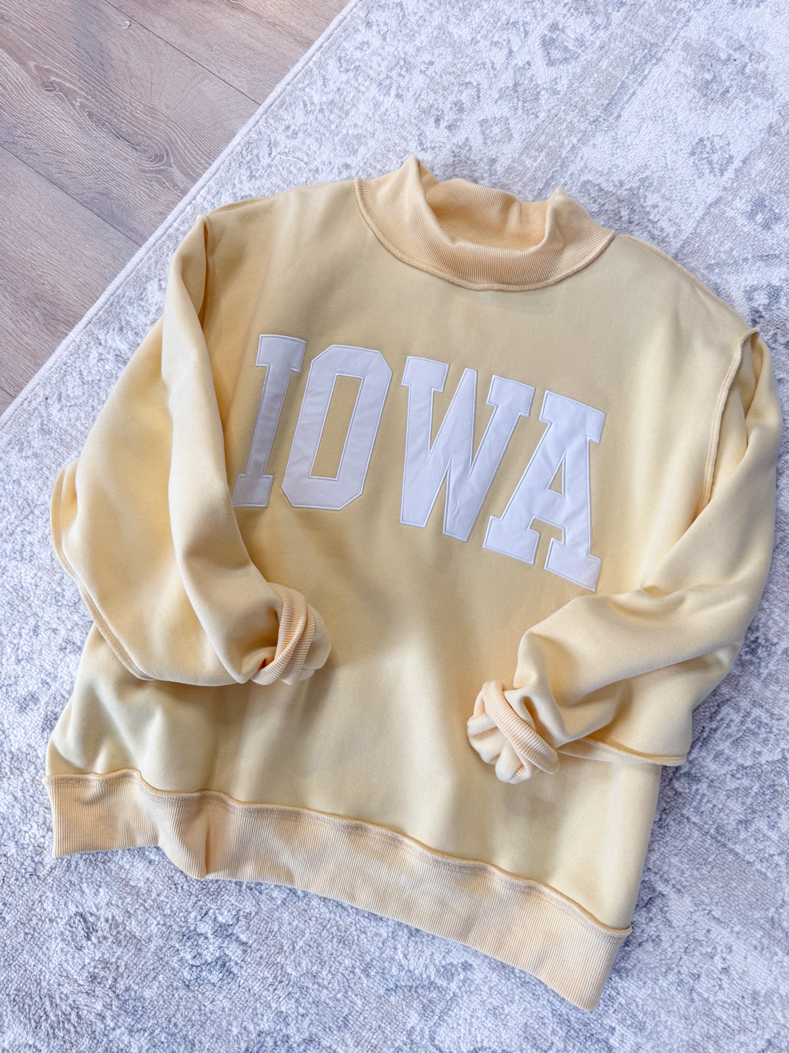 Our bestselling silhouette returns in an exclusive Katsch design featuring stunning butter yellow—one of the year's most gorgeous hues. Whether you're a devoted Hawkeyes fan, an Iowa native, or shopping for someone special, this mock neck pullover delivers an unbeatable fit that'll have you reaching for it again and again. The embroidered details add that perfect touch of personality to a cozy essential you'll absolutely love.