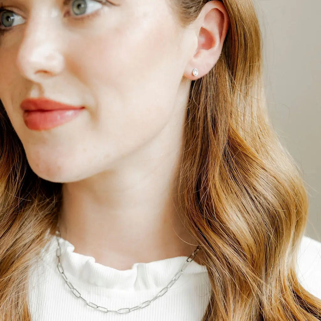 The Paloma Pear Silver Screwback Stud Earrings offer a refined and elegant design with a modern twist. These earrings feature a sleek, pear-shaped CZ stone set in a silver bezel, creating a timeless and sophisticated look. The screwback design ensures a secure fit, making them perfect for everyday wear or special occasions. Crafted from hypoallergenic materials, they are ideal for sensitive ears, offering both comfort and style.