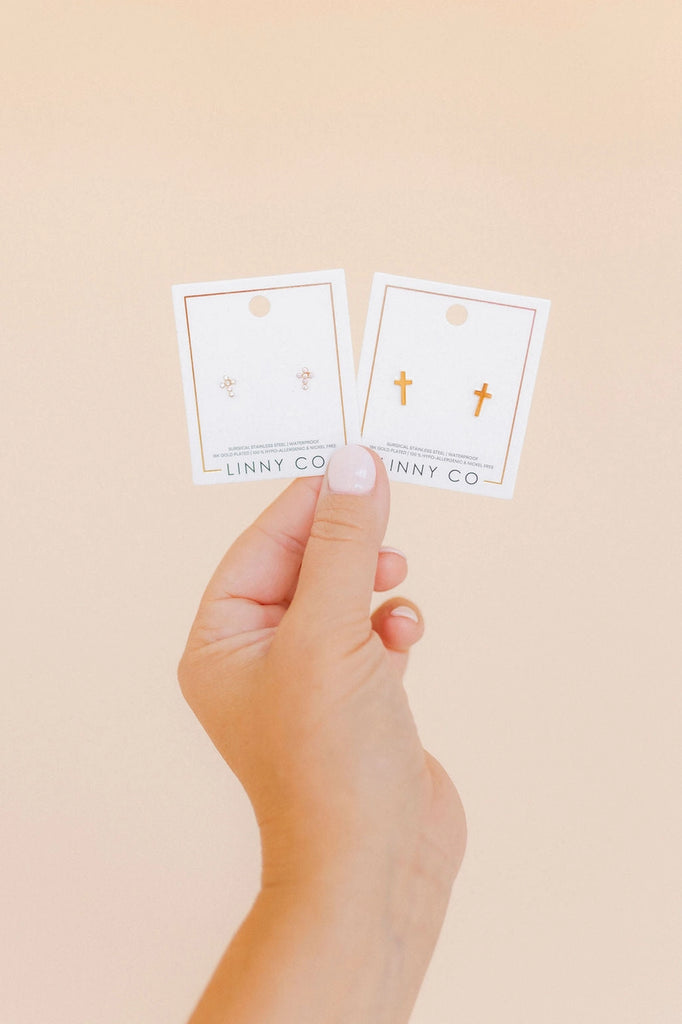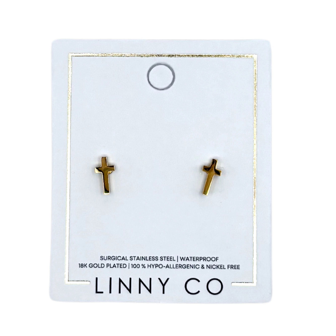 Add a timeless symbol of faith and elegance with the Catherine Cross Gold Stud Earrings. These 10mm classic gold cross studs are designed to blend seamlessly into any look, offering a subtle yet meaningful accessory. Crafted from 100% surgical-grade stainless steel, these earrings are lightweight, durable, and hypoallergenic, making them perfect for sensitive ears. The secure screwback design ensures a snug fit, making them comfortable for everyday wear. Waterproof and versatile, these gold cross earrings are ideal for daily wear or special occasions, adding just the right touch of sophistication and style to your look. Comfortable enough for all-day wear, including while sleeping.