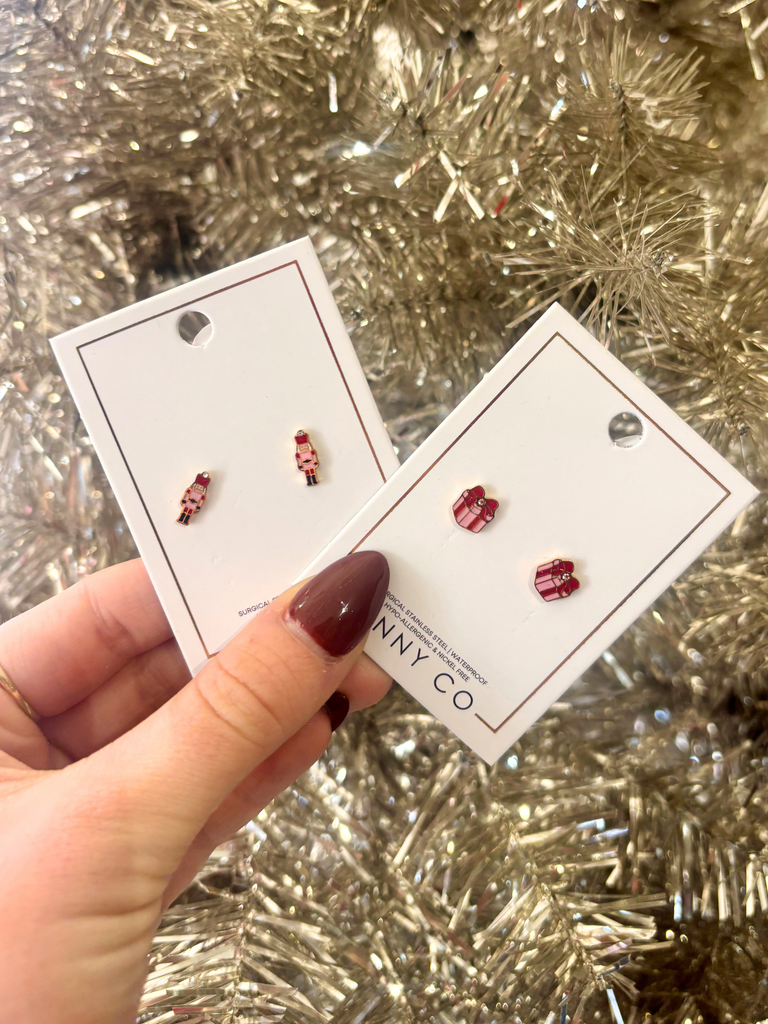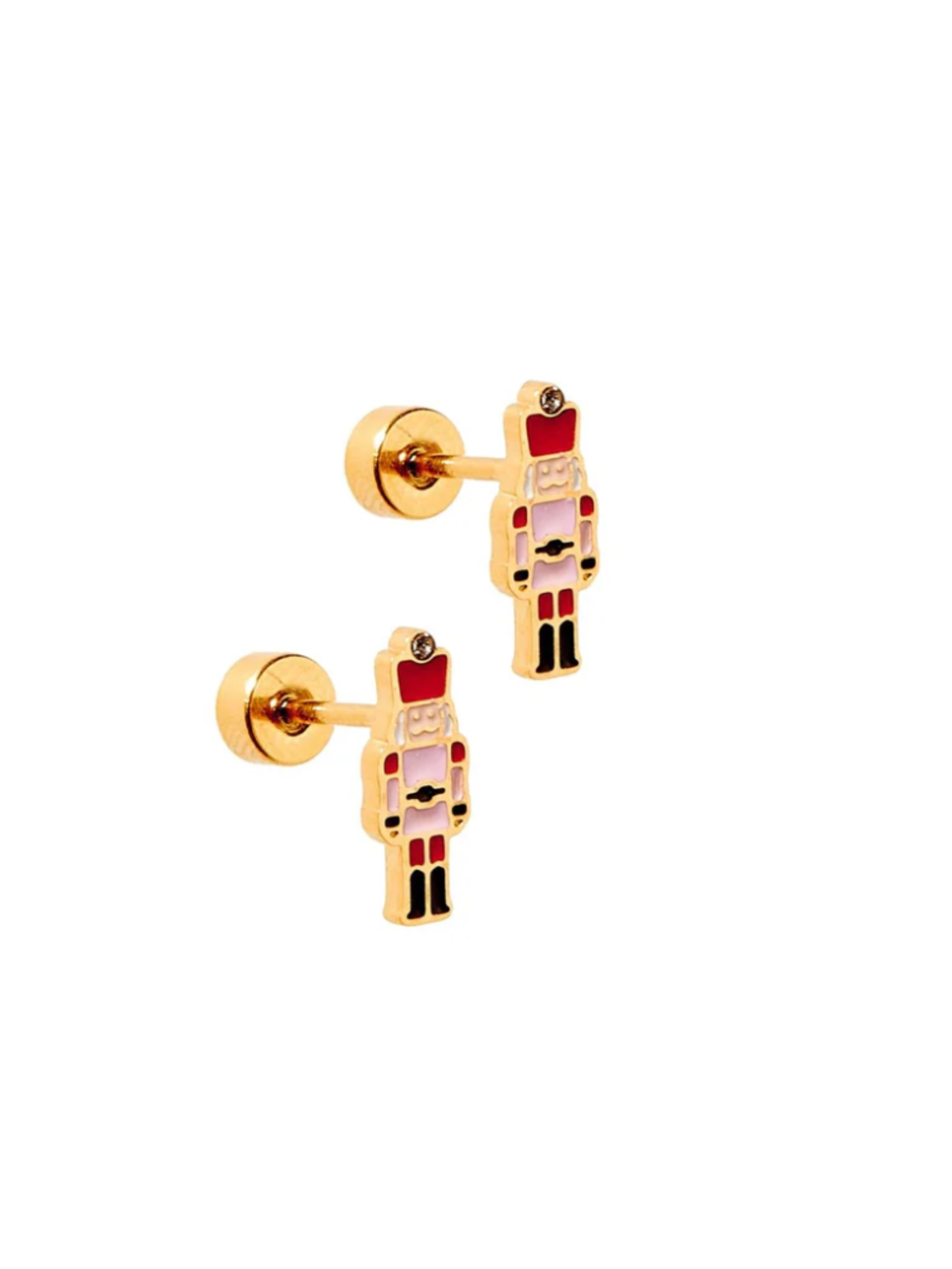 Add festive flair with these Nutcracker Stud Screwback Earrings. The 9mm studs feature a secure screwback design that stays put all day, while their waterproof, durable construction handles active wear with ease. Perfect for holiday parties, winter gatherings, or everyday seasonal style.