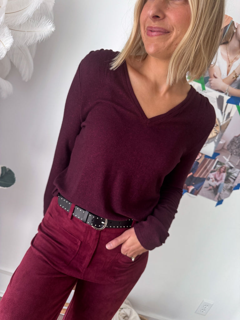 Grace Solid Henley Top- Burgundy