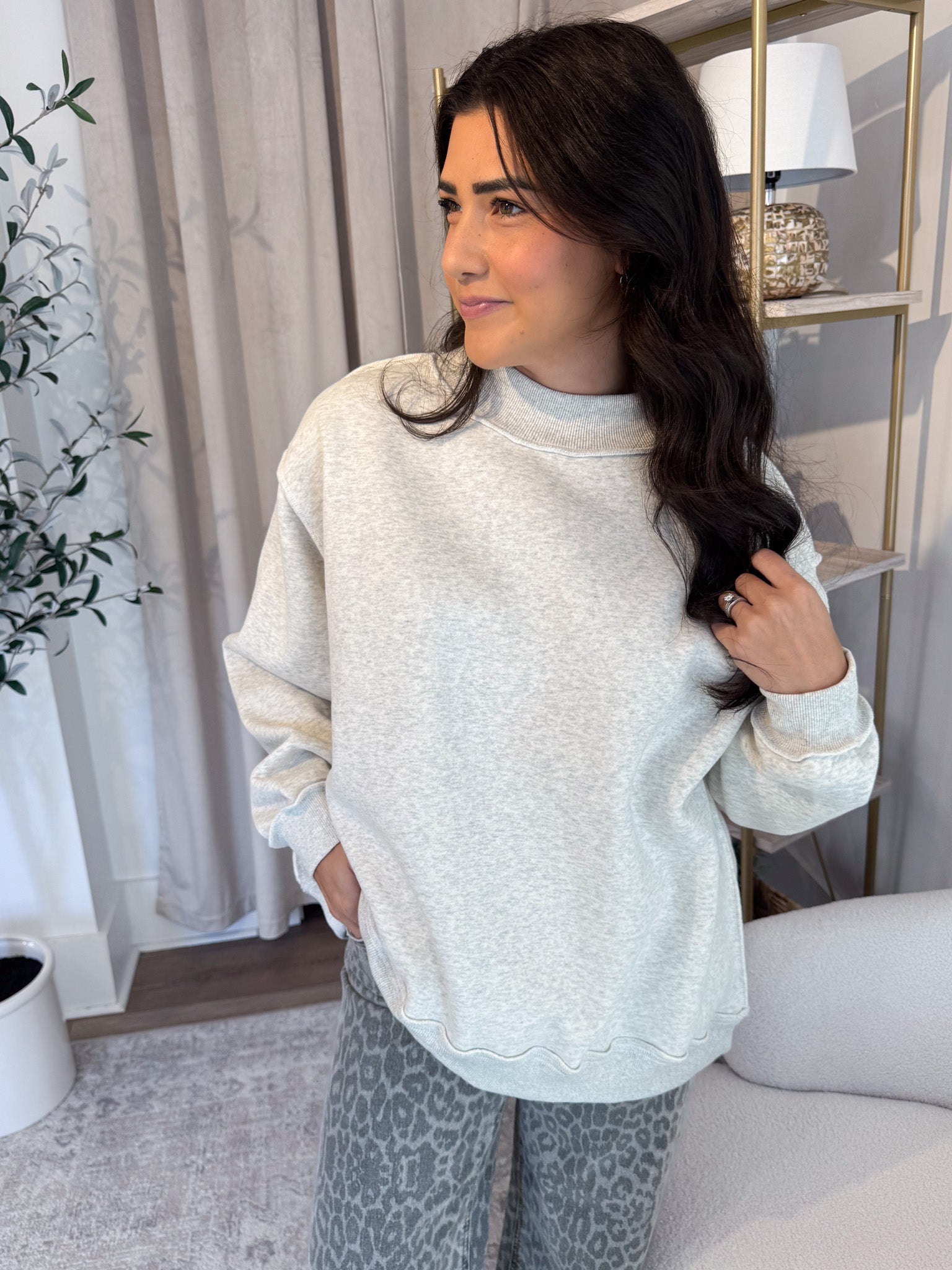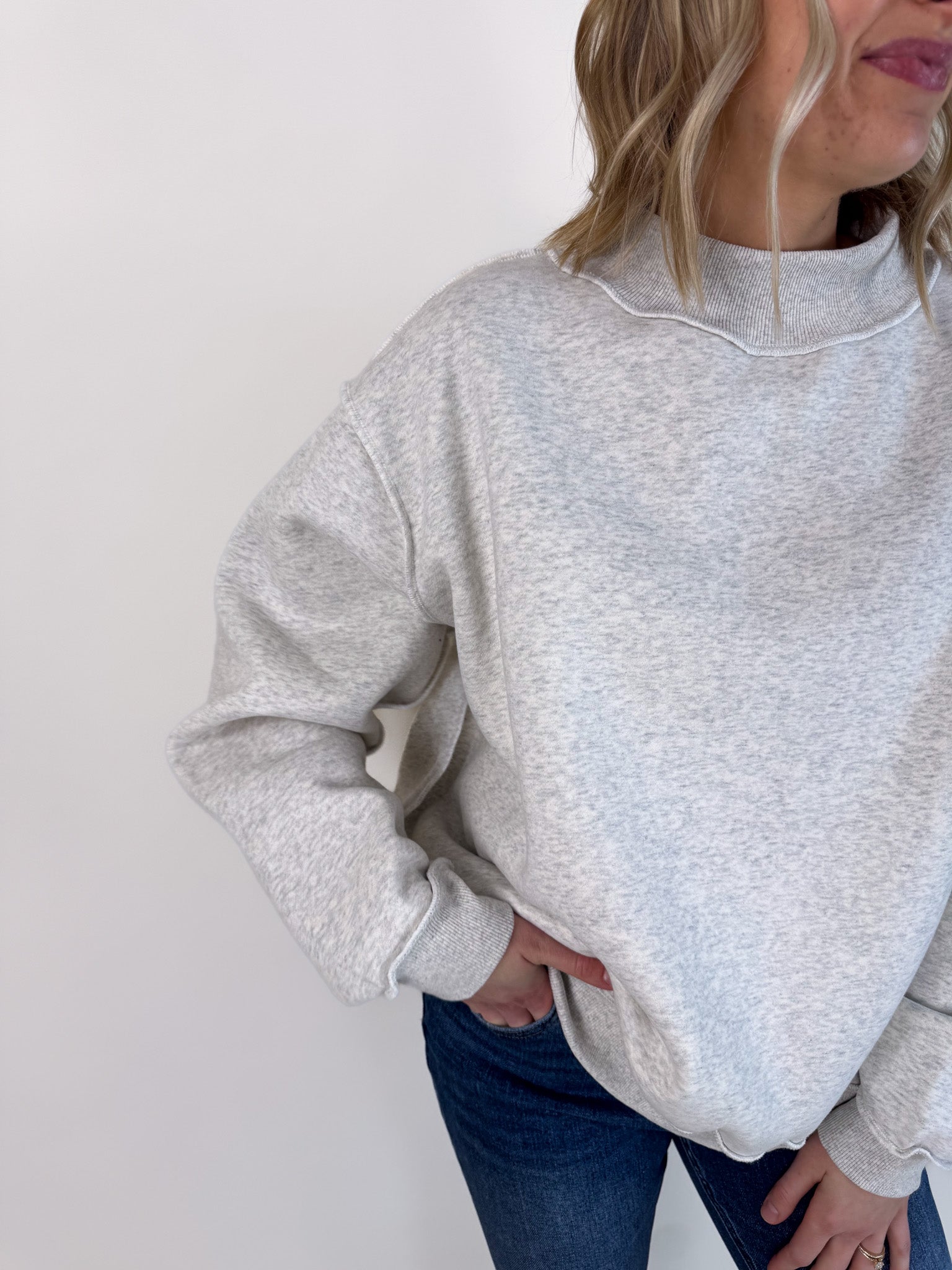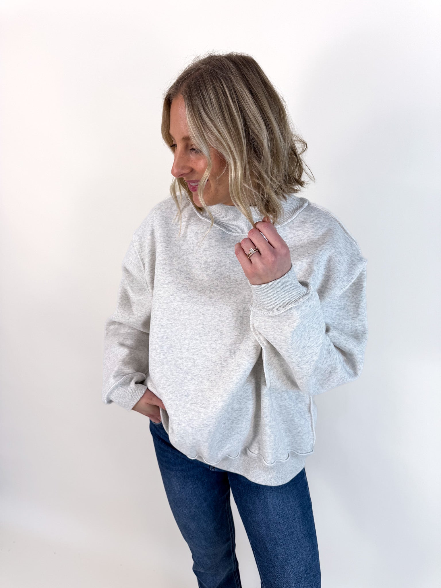 Solid Reversible Mock Neck Pullover- Ash Grey
