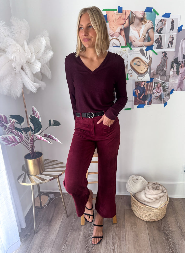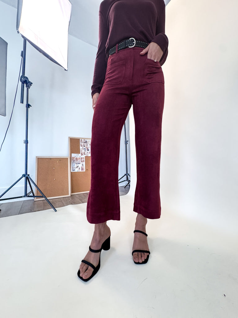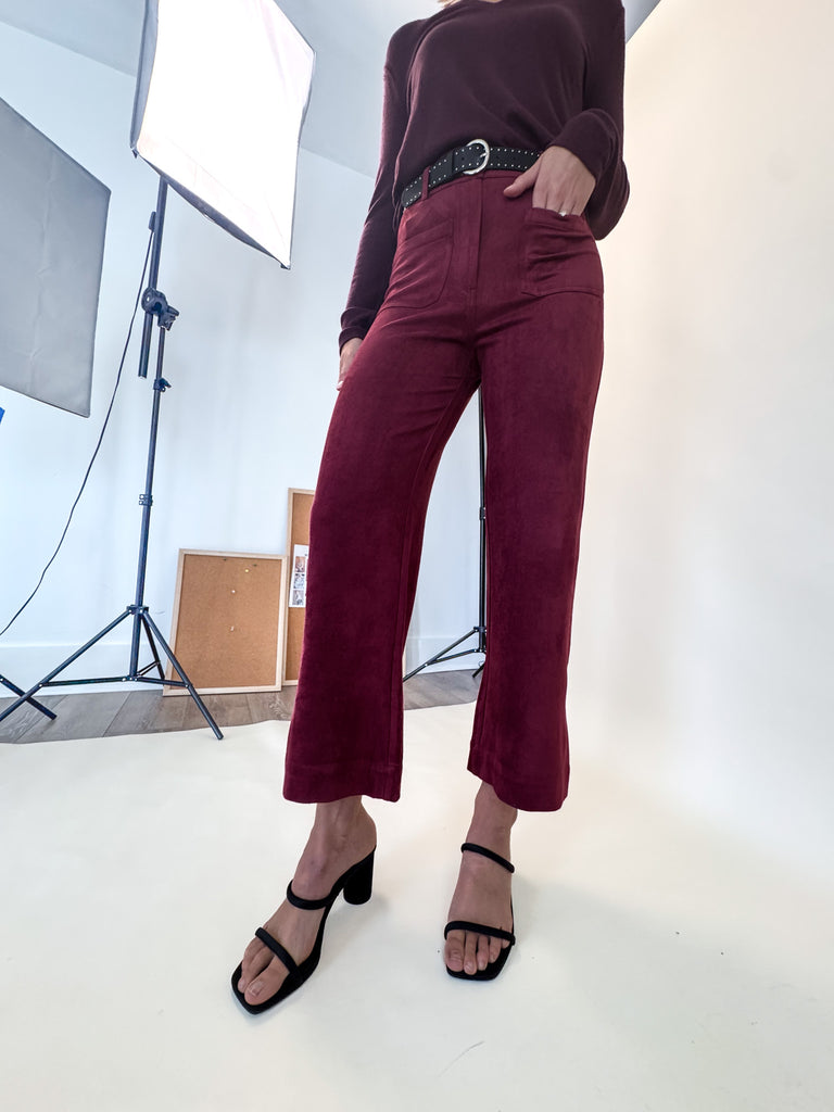 Caroline Faux Suede Burgundy Pant