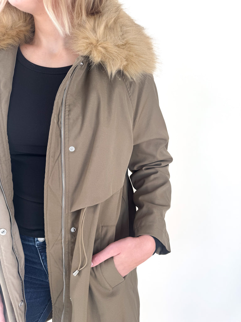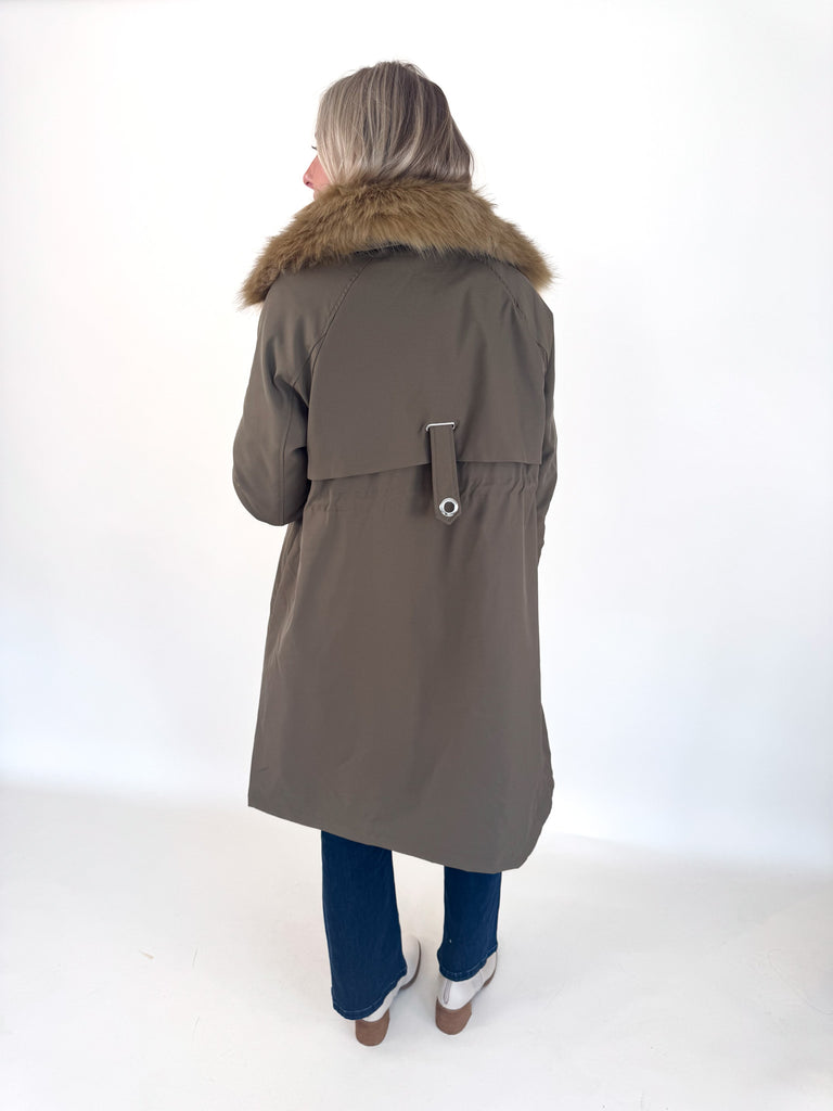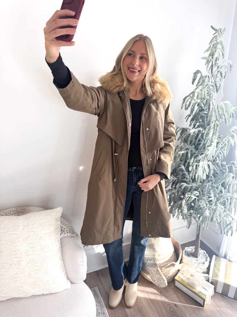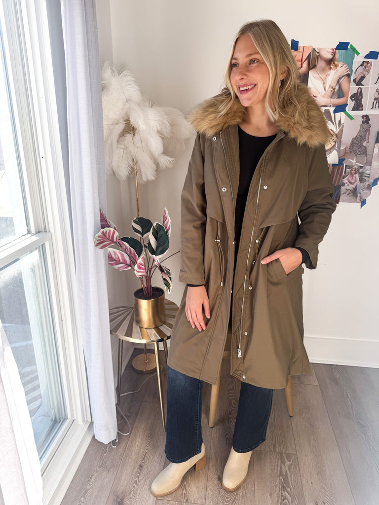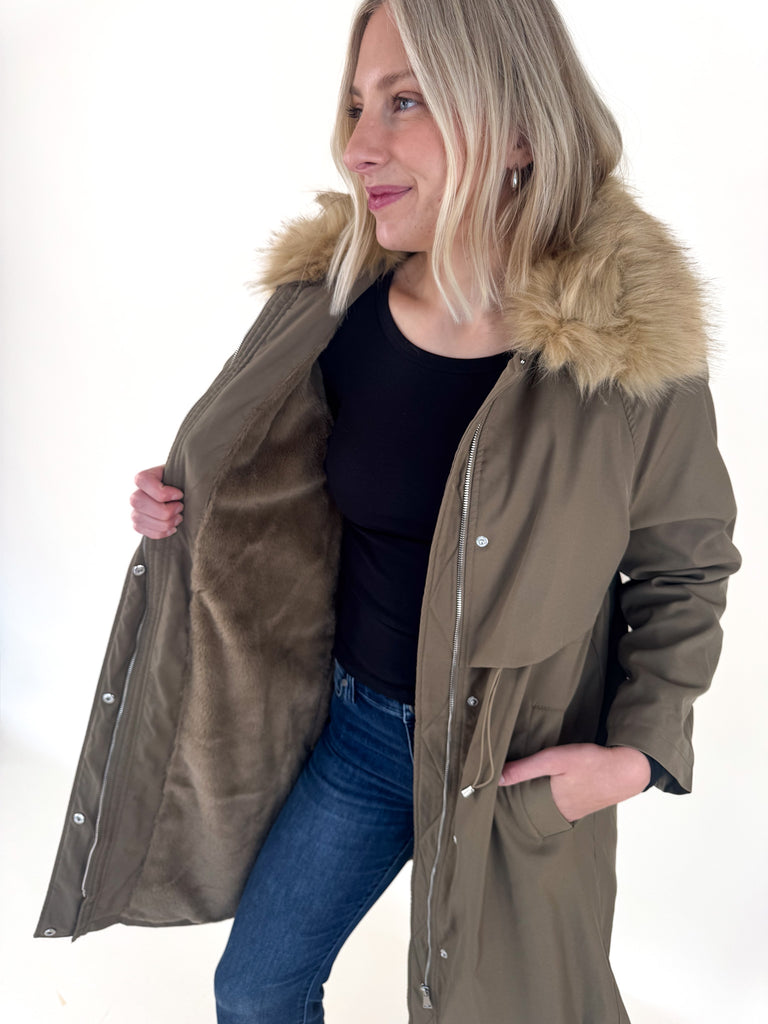 Khaki Faux Fur Lined Parka