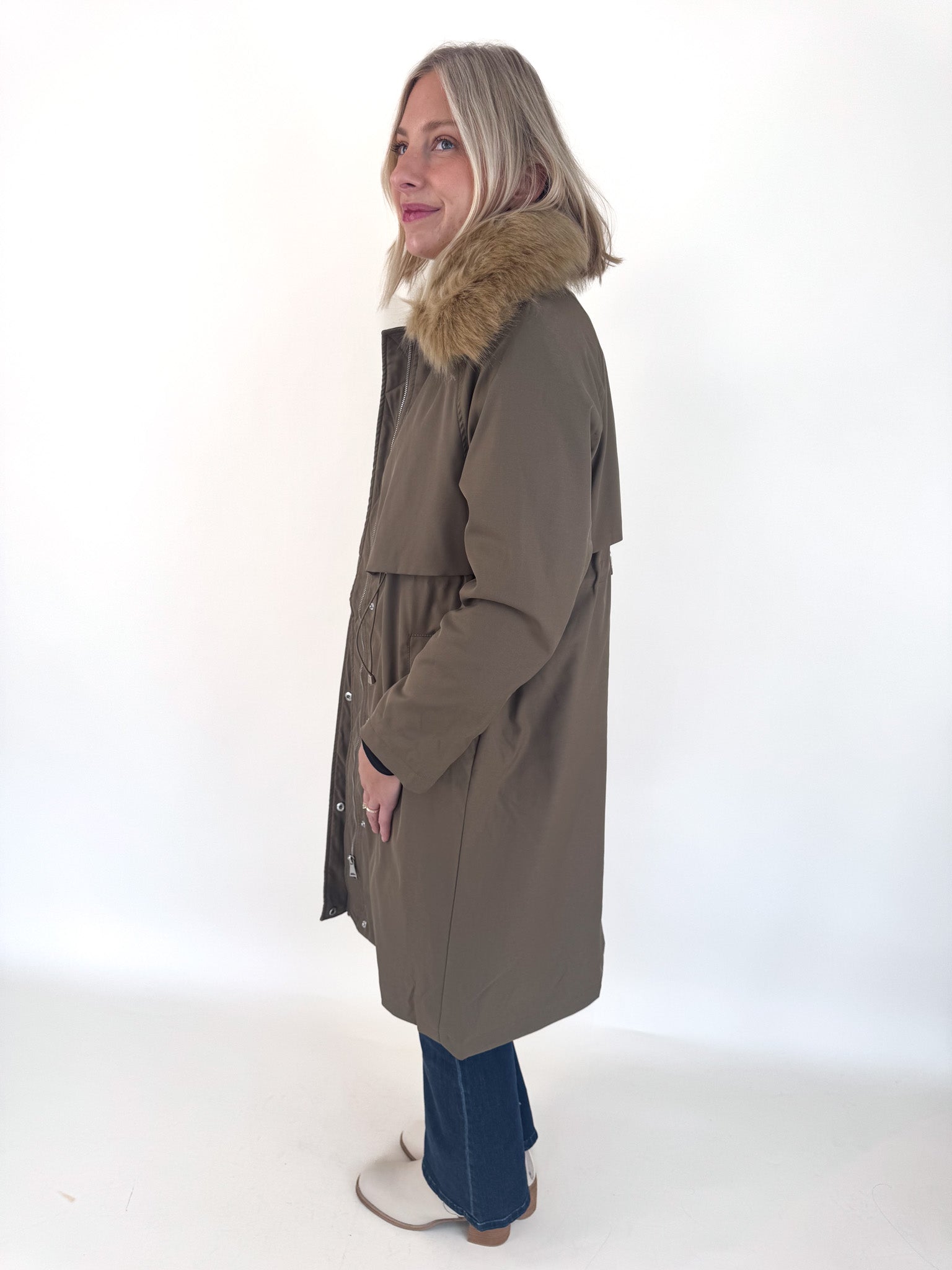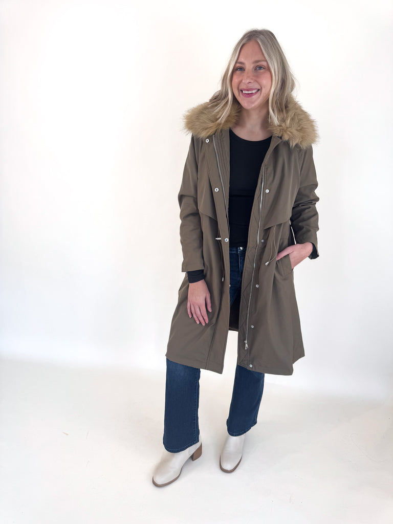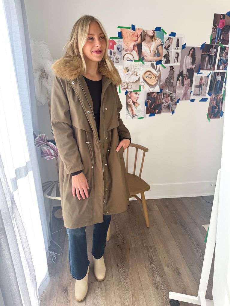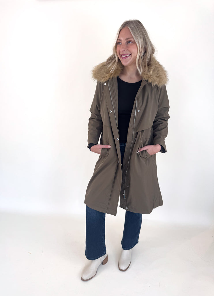 Khaki Faux Fur Lined Parka