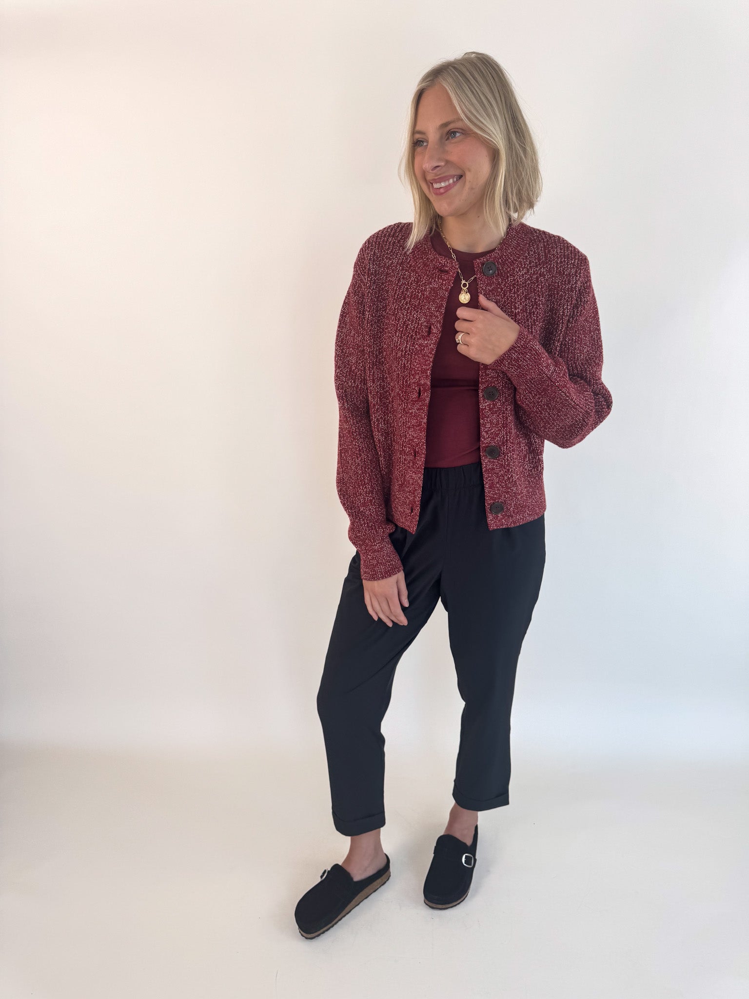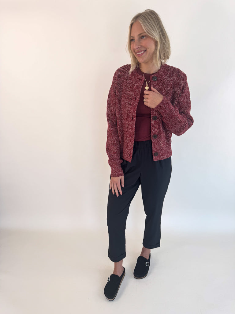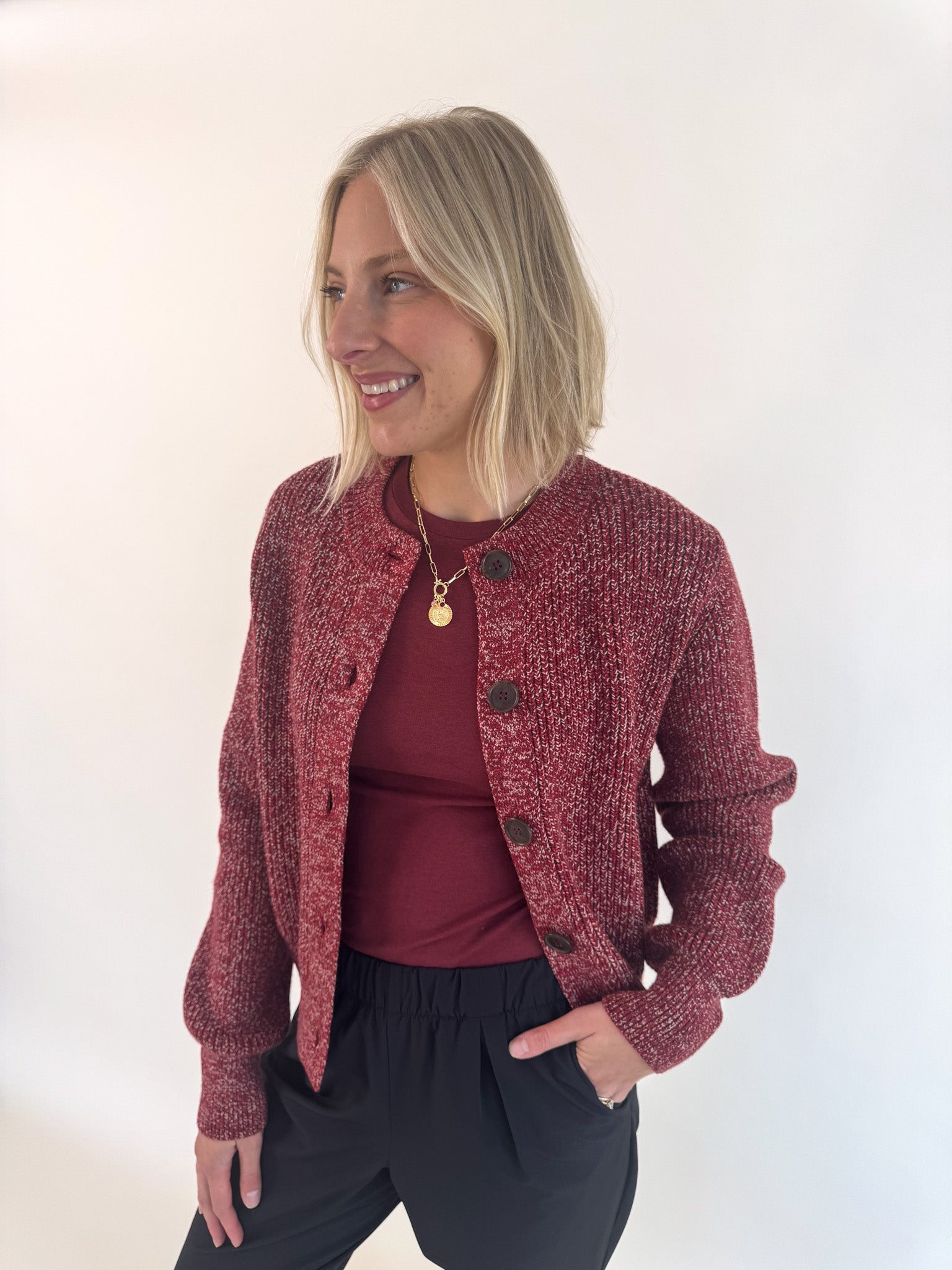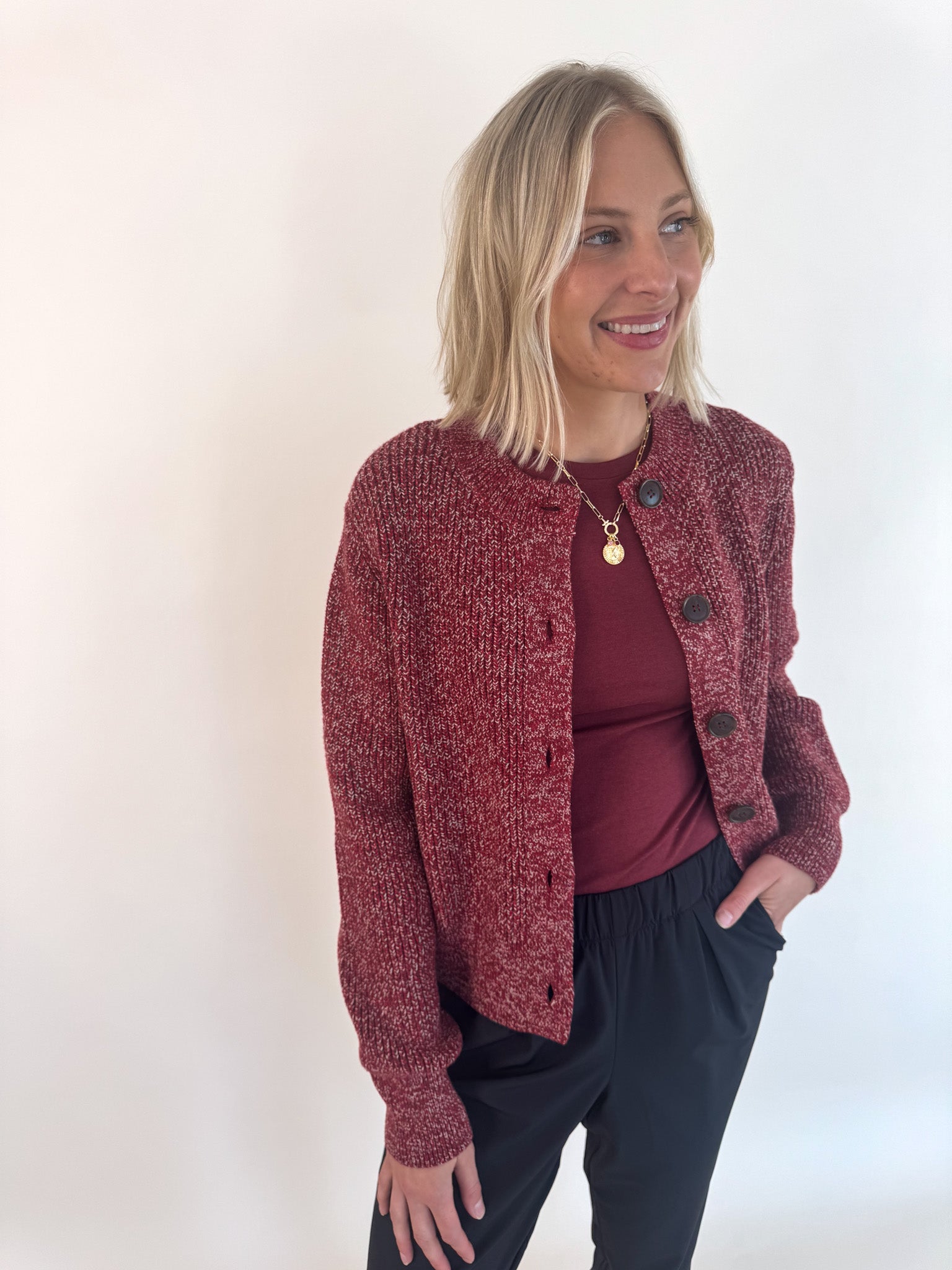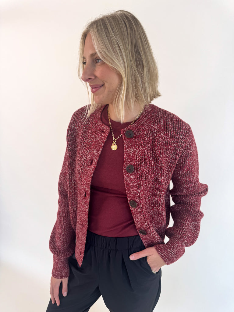 Elevate your transitional wardrobe with this luxuriously soft cardigan. Crafted from Soft Viscose in a mid-gauge stitch, the Patricia is super soft and breathable, perfect for layering. A fleck effect and a rib stitch running throughout add texture. Cut to a relaxed fit and complete with a crew neck, a button-through front, and fashioning details to the arms.