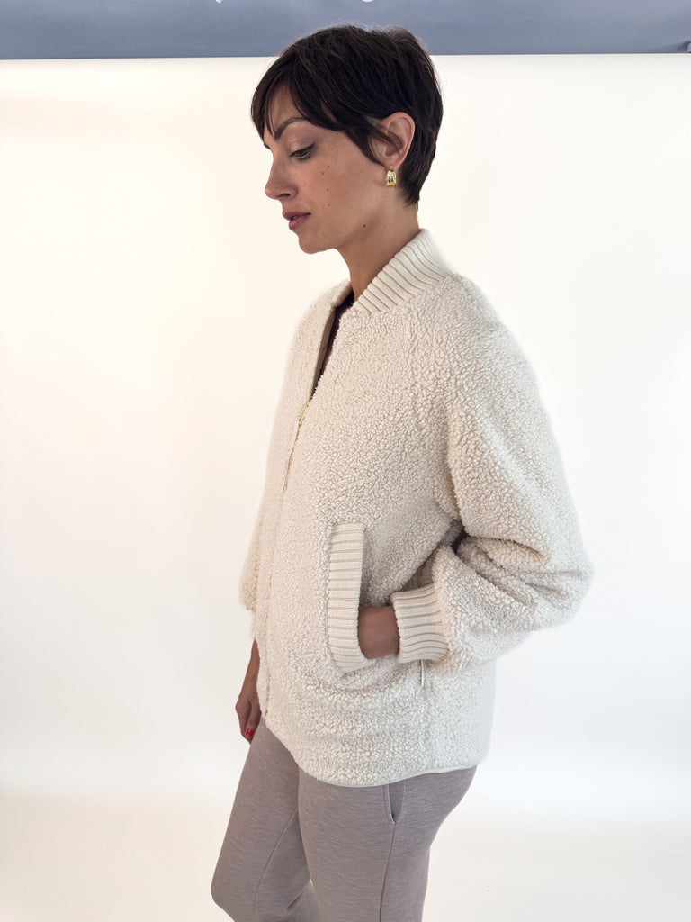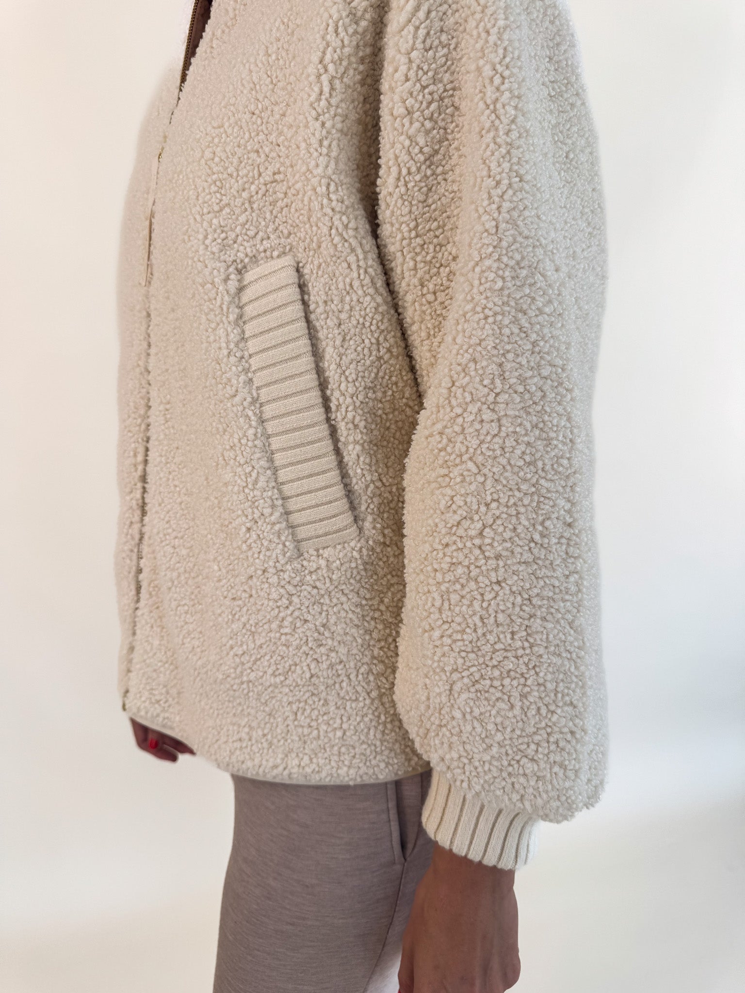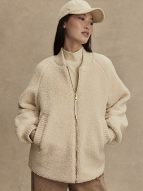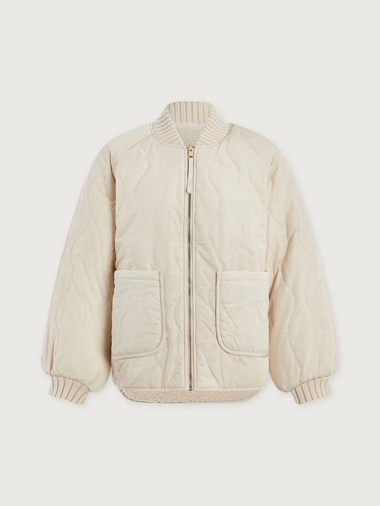 Customize your style with this soft and lightweight reversible jacket. Customize your style with the reversible Serina. Soft, lightweight, and super versatile, it's perfect for effortless transitional and cold-weather layering. Made from a tight, curly Bouclé Sherpa on one side and our Crinkle Shell fabric in quilted design on the other, it's cut to a boxy bomber shape with a flattering curved hem. Complete with pockets and chunky knitted cuffs and collar.