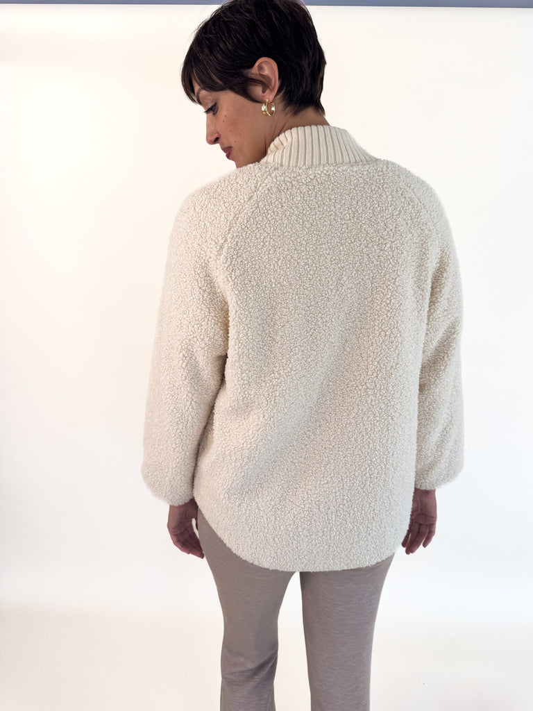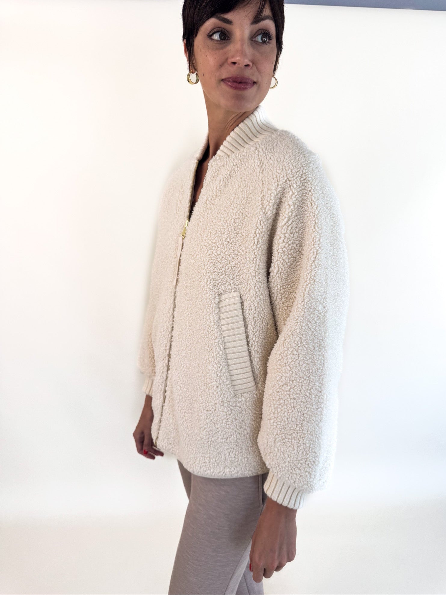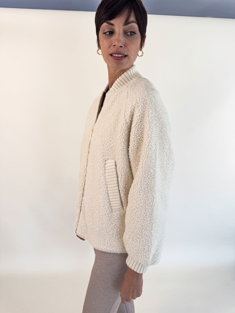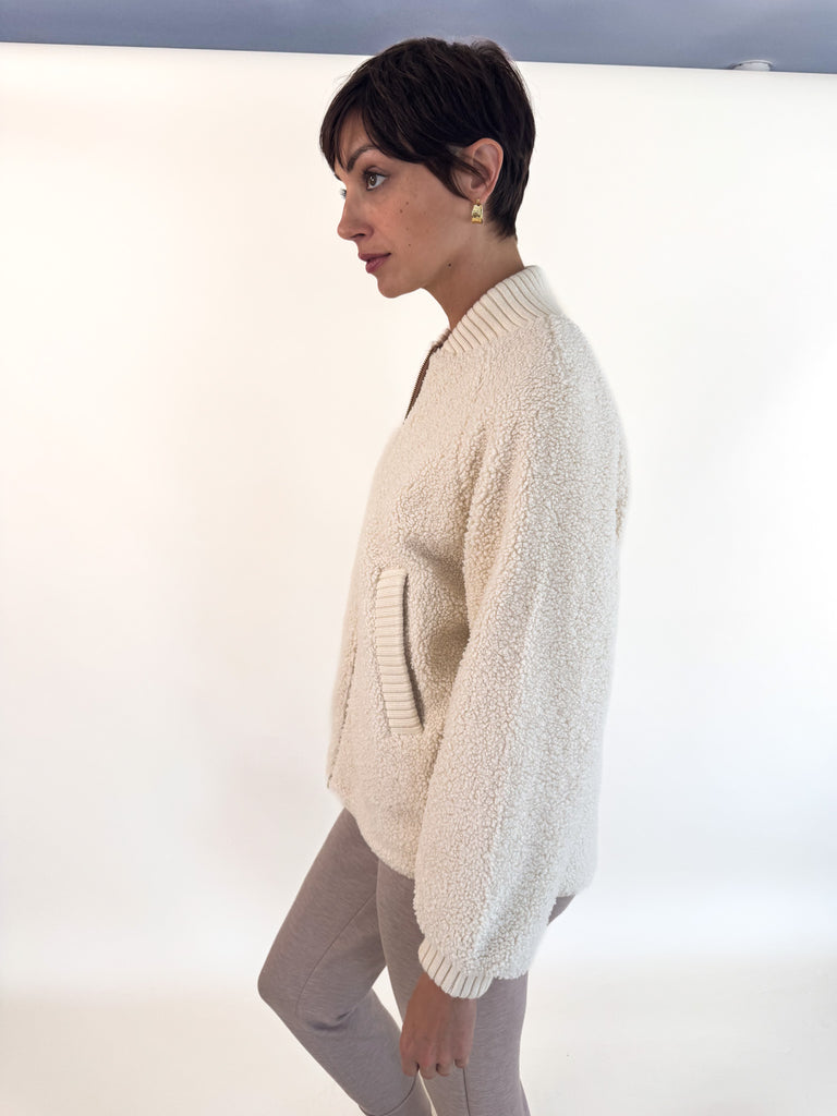 Customize your style with this soft and lightweight reversible jacket. Customize your style with the reversible Serina. Soft, lightweight, and super versatile, it's perfect for effortless transitional and cold-weather layering. Made from a tight, curly Bouclé Sherpa on one side and our Crinkle Shell fabric in quilted design on the other, it's cut to a boxy bomber shape with a flattering curved hem. Complete with pockets and chunky knitted cuffs and collar.