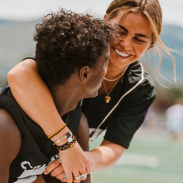 This Game Day set is made to show your school spirit with style and pride. These 5 hair tie bracelets feature bold team colors of black and gold. They are perfect for cheering from the sidelines or celebrating a win. With a “Let’s Go” charm and a natural stone bead accent, this set is a fun way to support your team and wear your pride on your wrist while ready to pull your hair up when the games gets intense.
