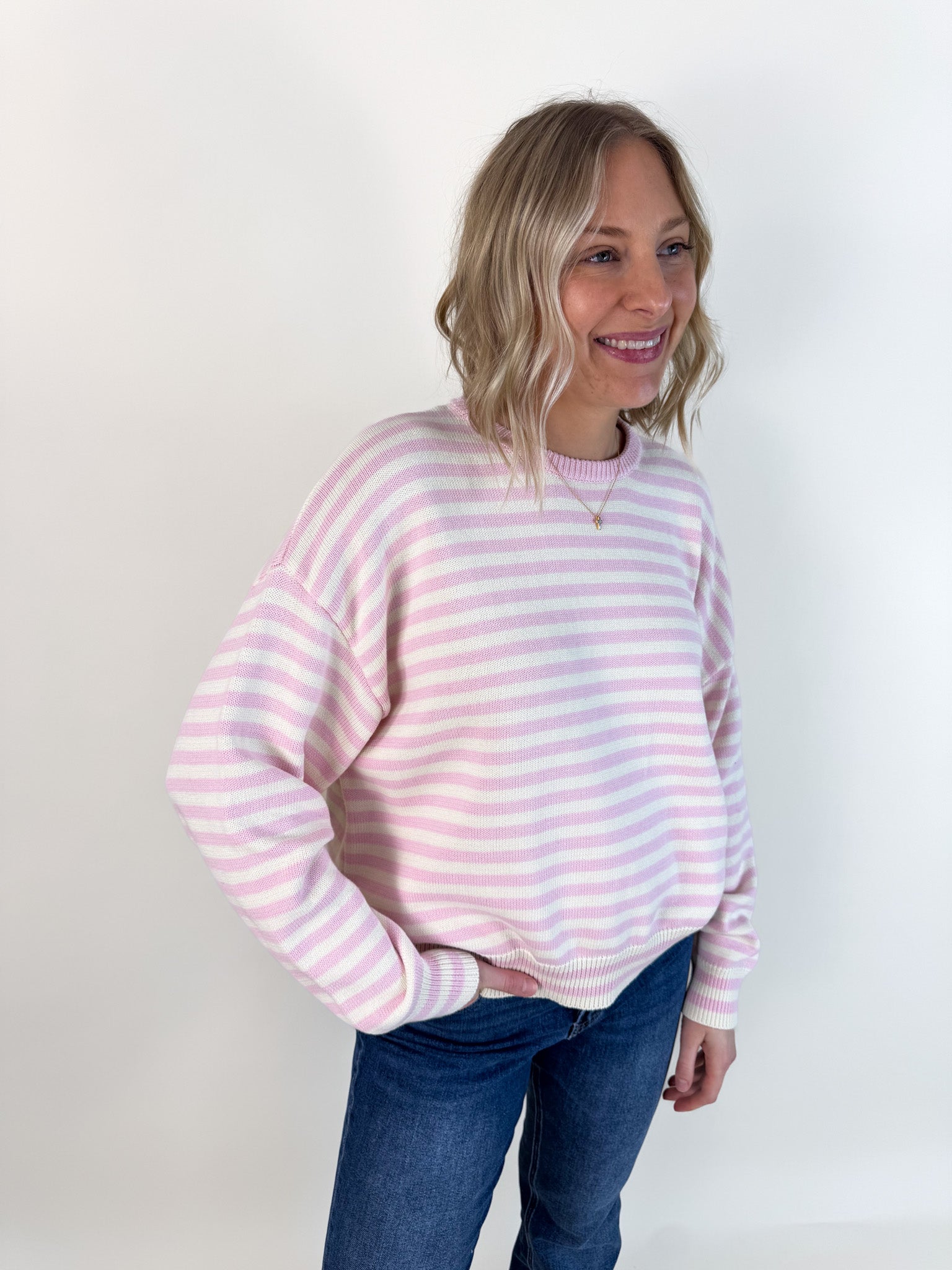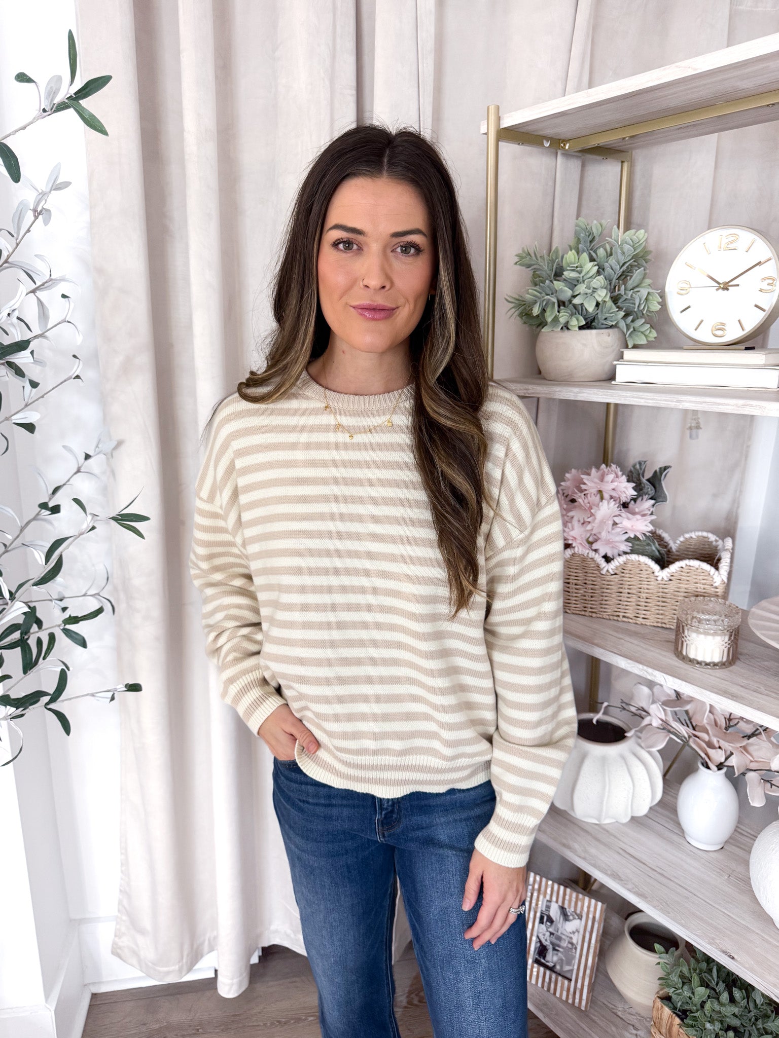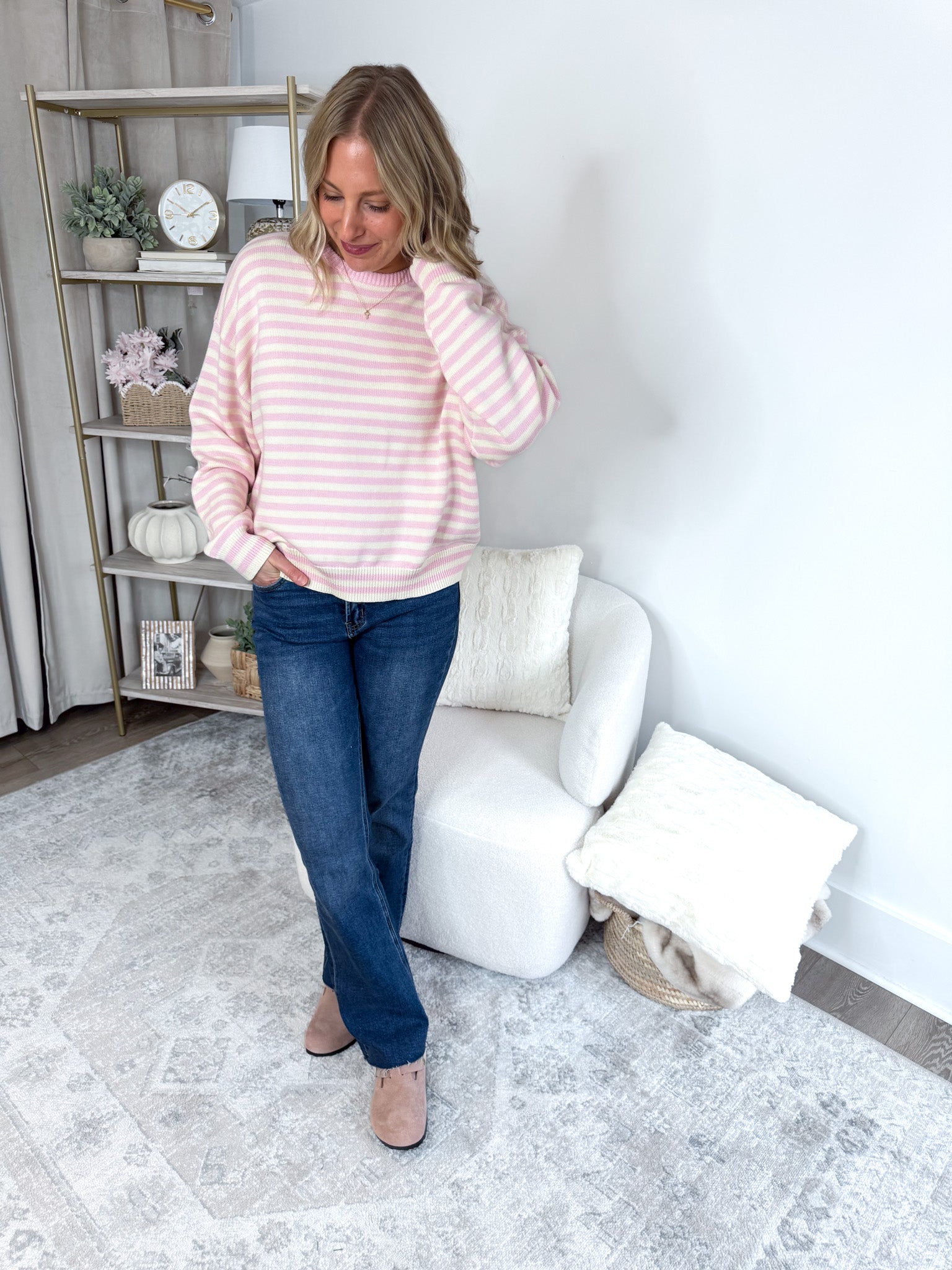 Relaxed and stylish, our Kassie Stripe Sweater offers a comfy fit with bold stripes for an effortlessly polished look.