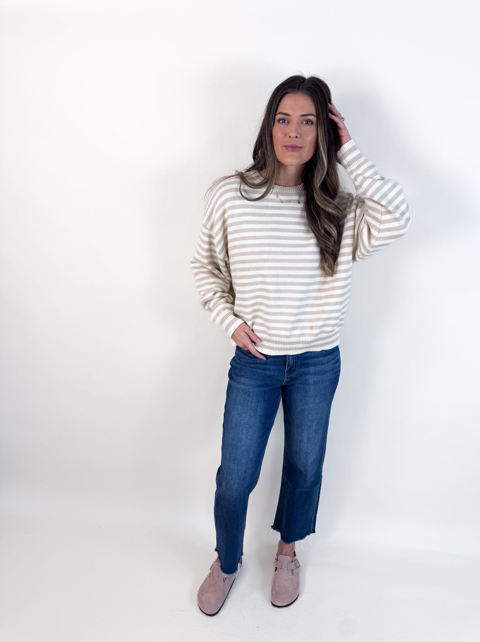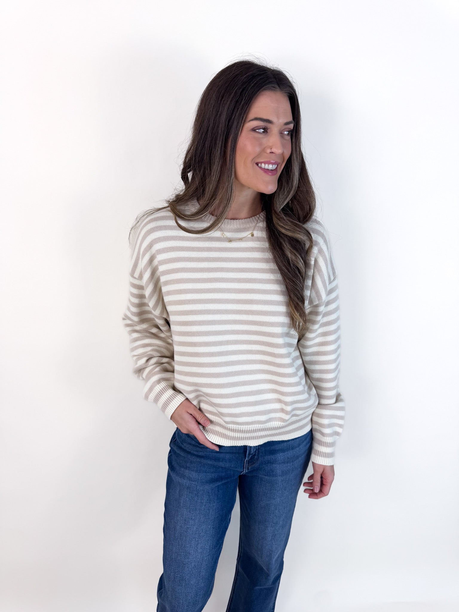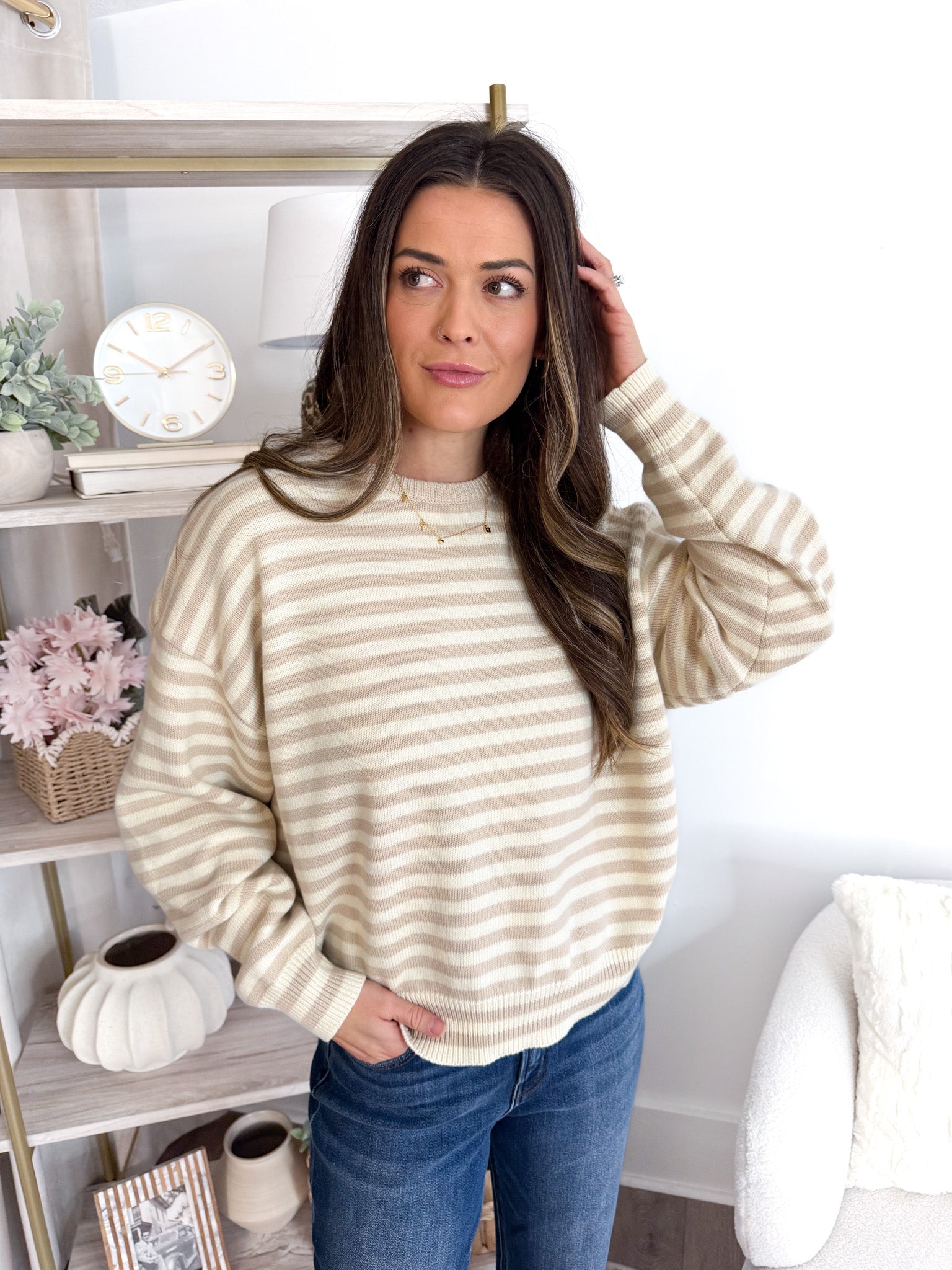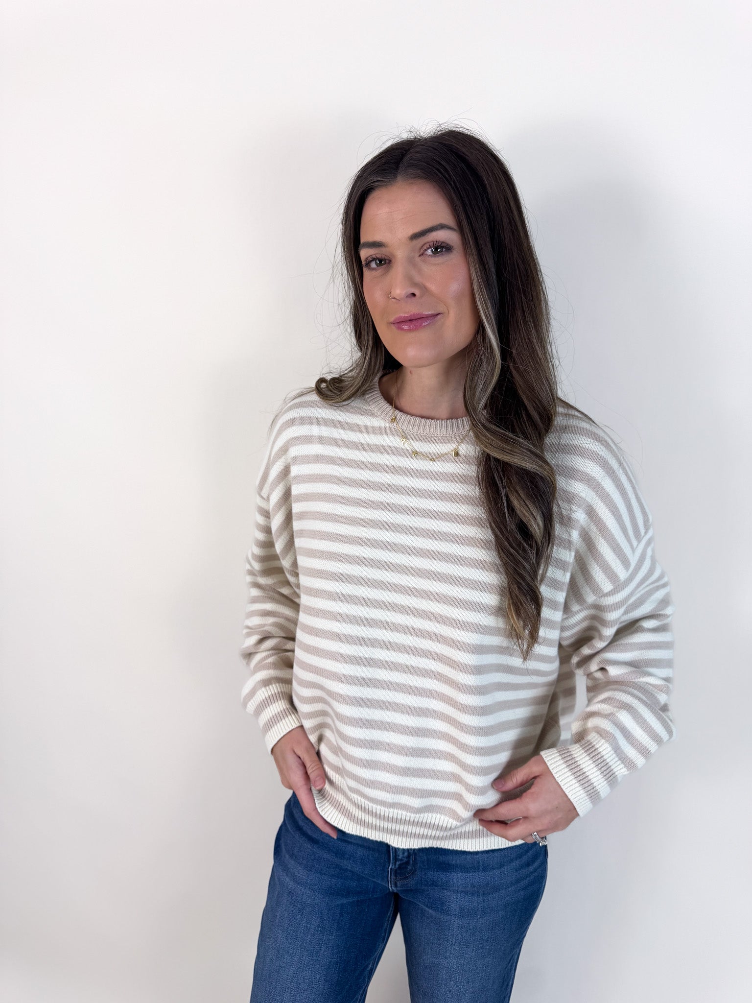 Relaxed and stylish, our Kassie Stripe Sweater offers a comfy fit with bold stripes for an effortlessly polished look.