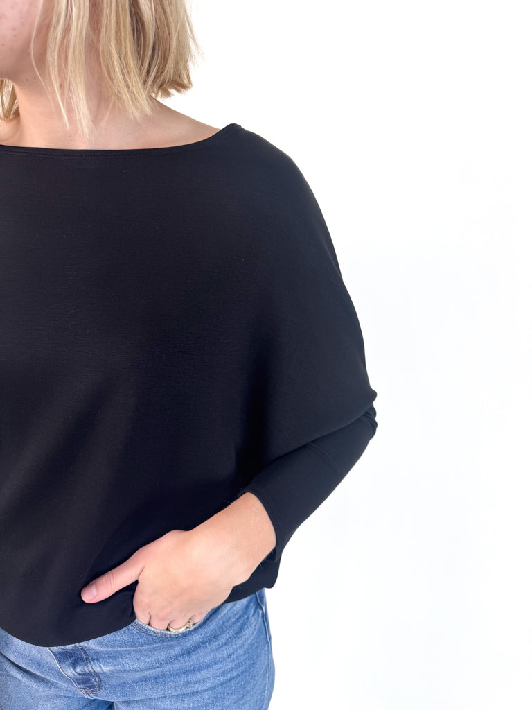 Maeve Modal Black Scuba Dolman Sleeve Top