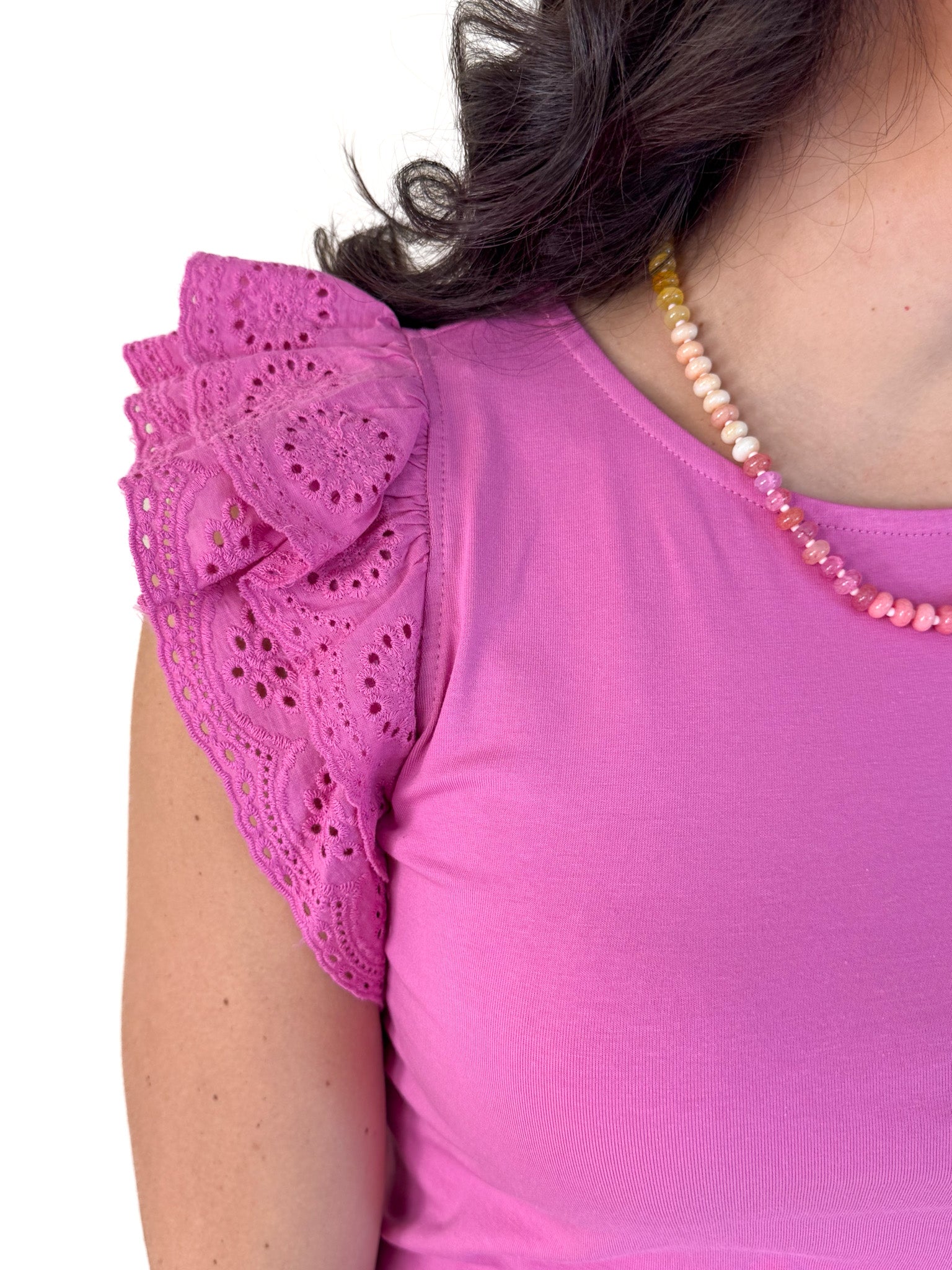 - Eyelet ruffle sleeve