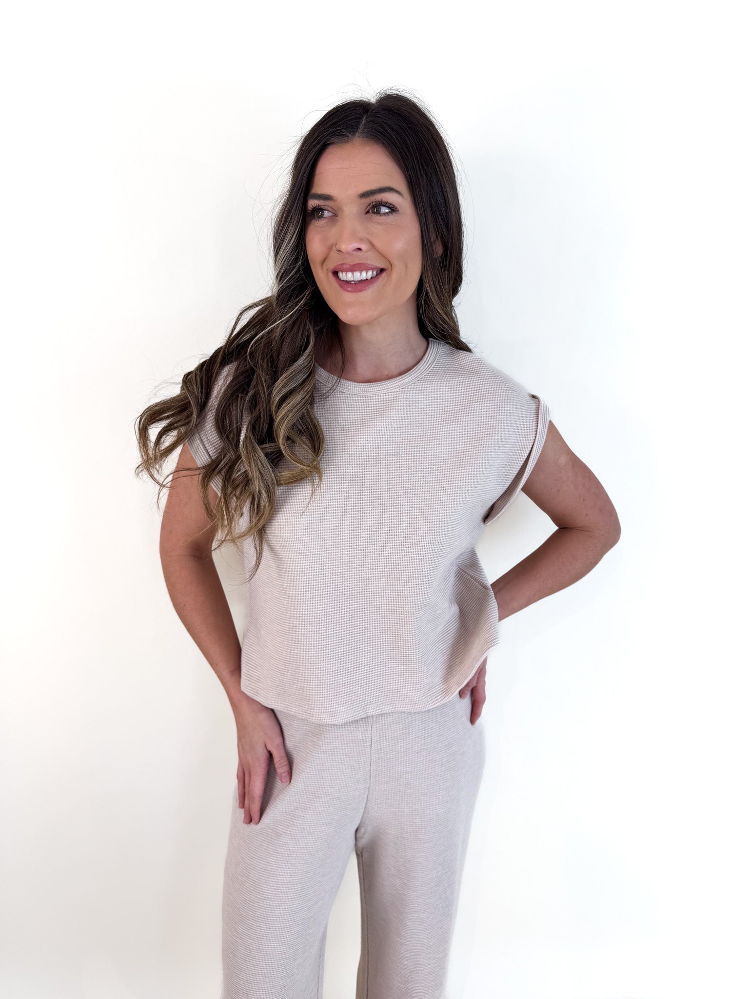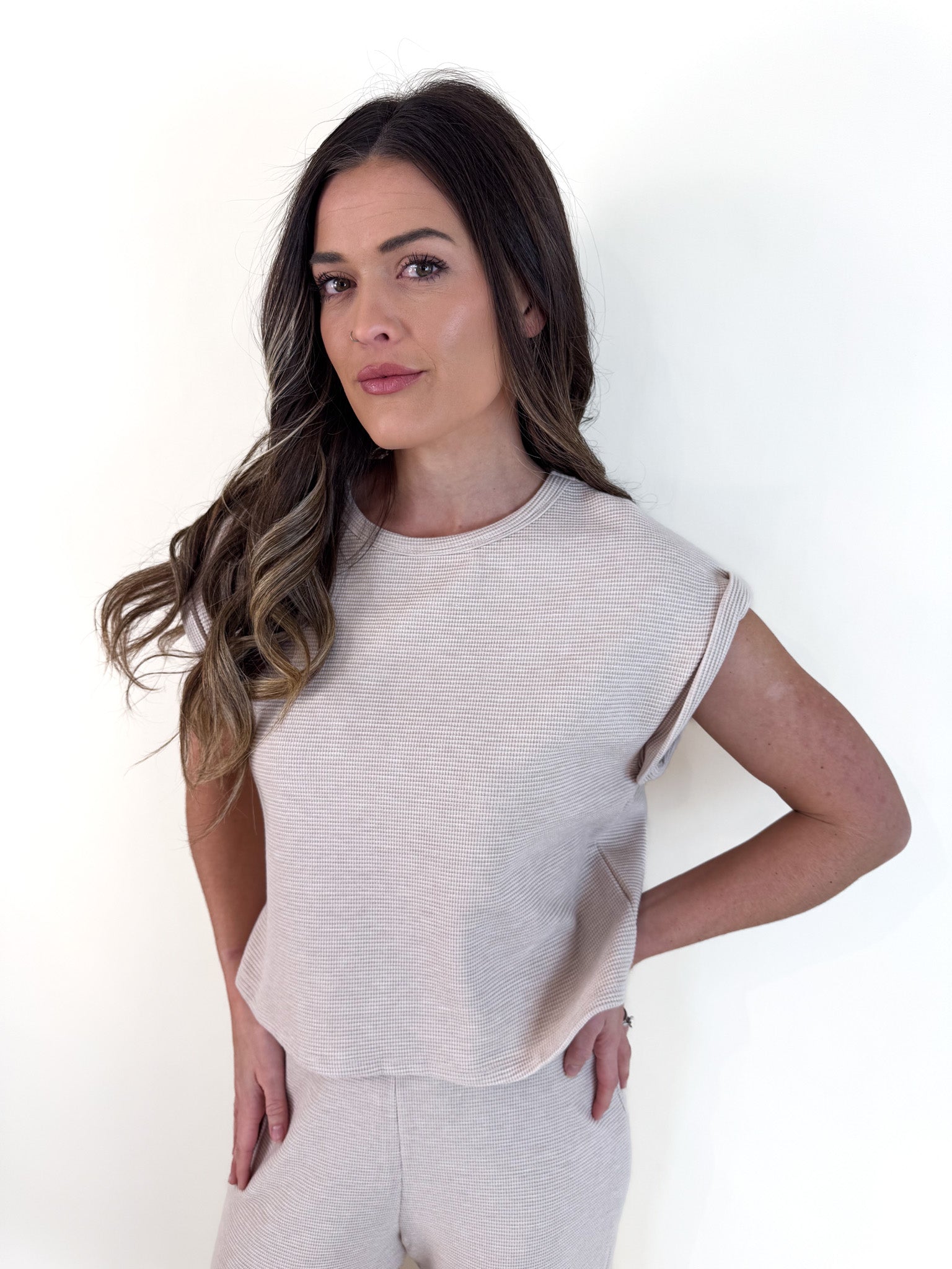 The relaxed silhouette pairs perfectly with everything in your closet, while rolled cap sleeves add a charming, put-together touch without the fuss.
