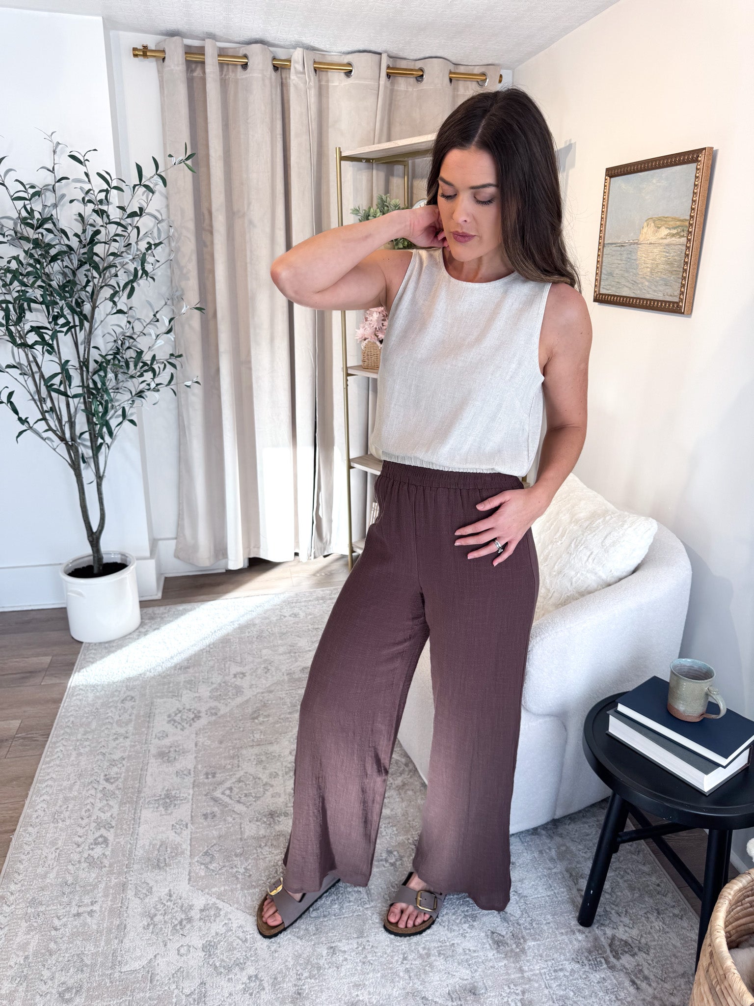 Escape to the coast in our SoCal Chocolate Pants—effortlessly breezy and impossibly comfortable. The flowy silhouette moves with you, while a soft lining keeps things cozy against your skin.