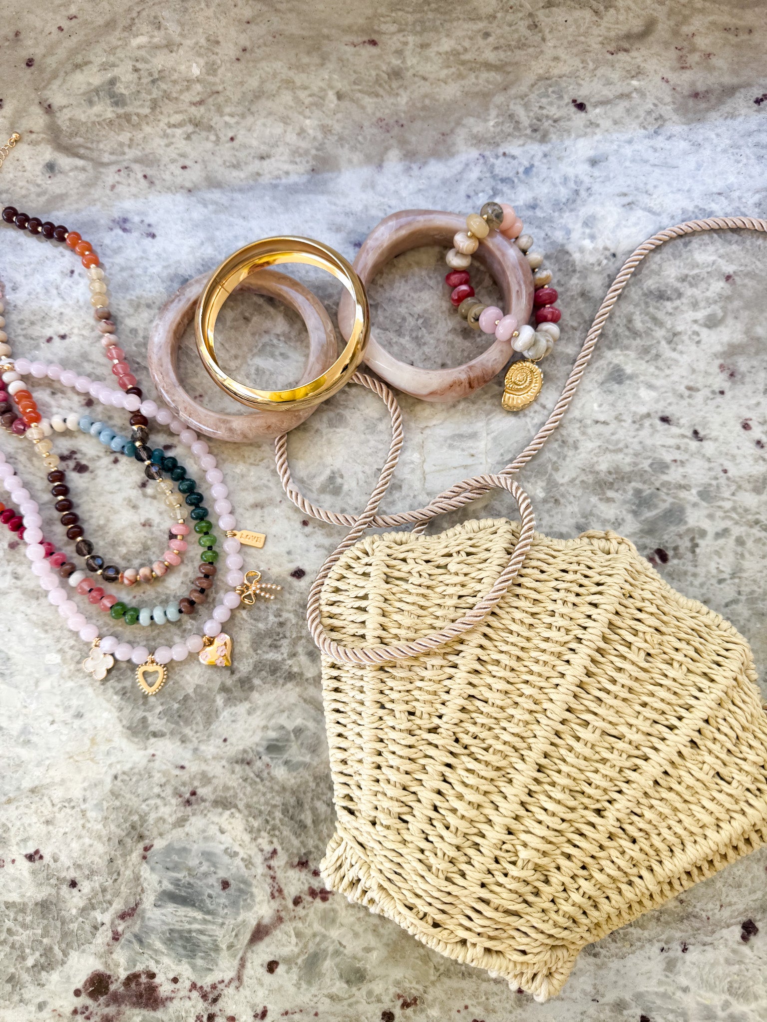 Woven straw meets coastal charm in this crossbody bag, designed to turn heads wherever you go. The intricate braided seashell detailing adds an effortless touch of sophistication, making it the perfect companion for beach days or everyday adventures.