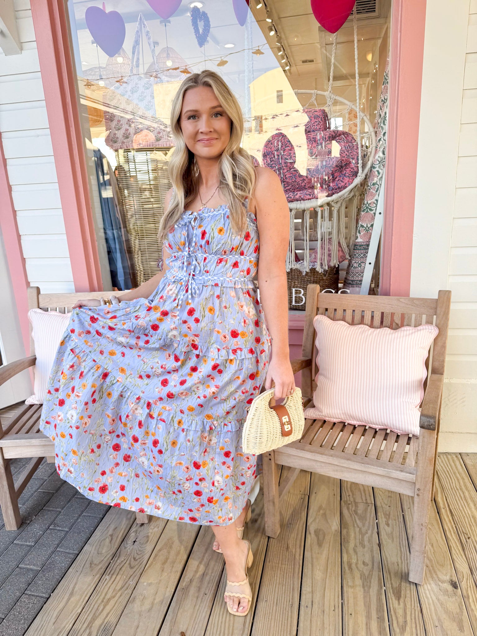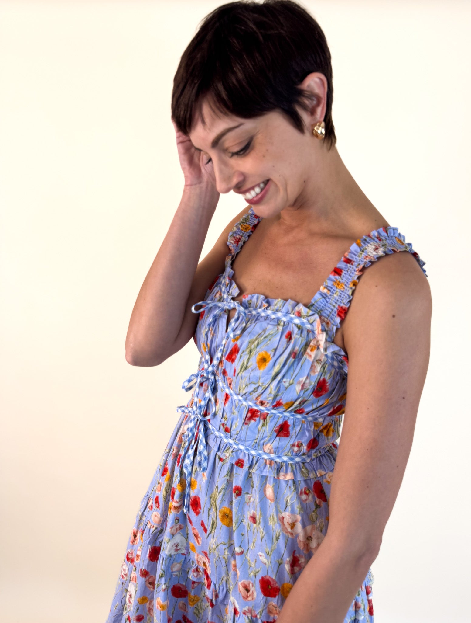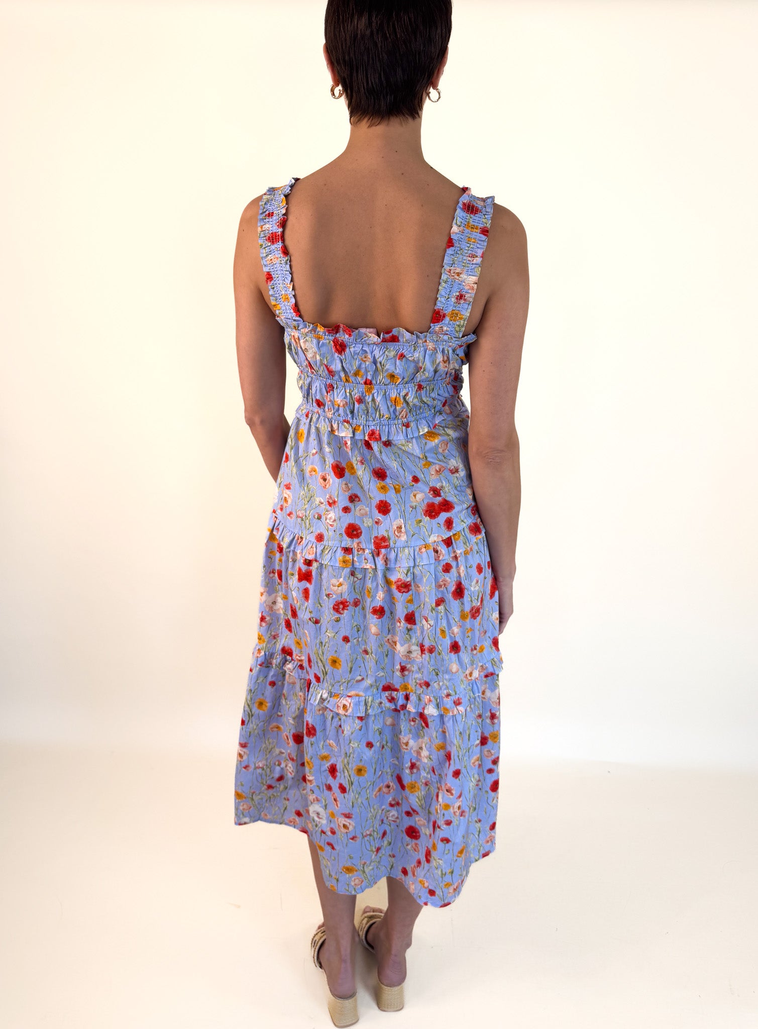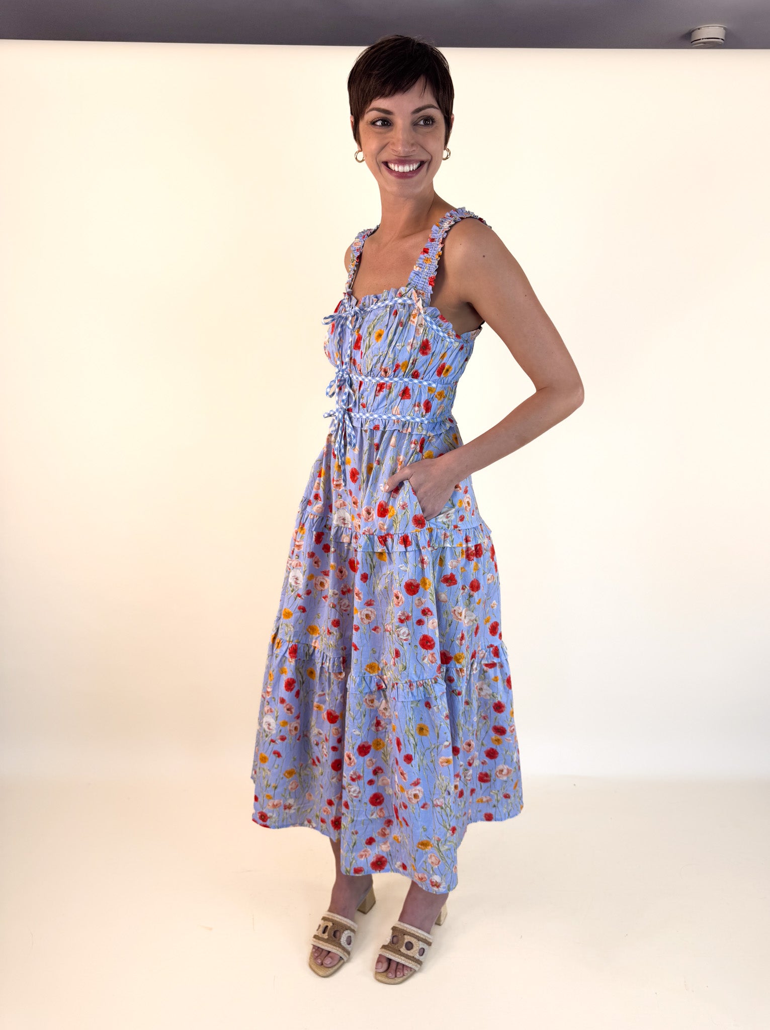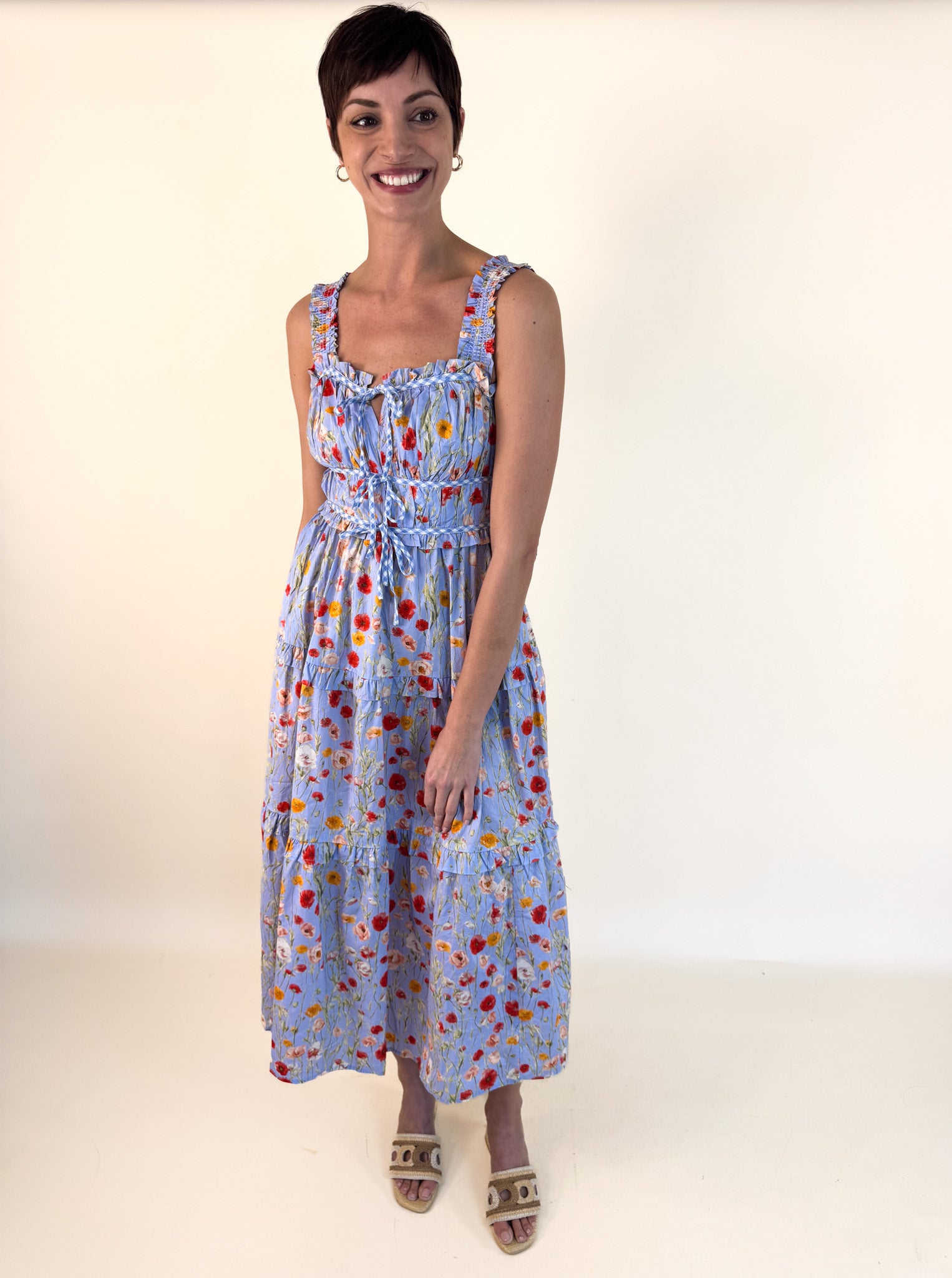 Crafted for comfort and flattering on every body type, this dress transitions seamlessly from casual outings to garden-party gatherings. Bold poppies bloom throughout the design, adding a vibrant pop of personality.