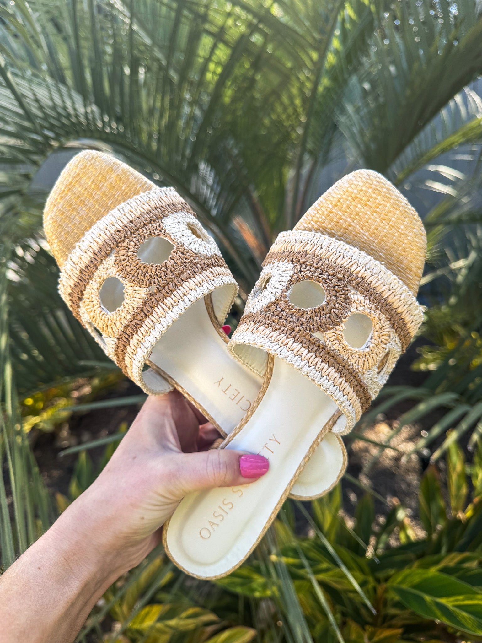 An elevated essential. The Gia showcases atelier-selected raffia with a woven embroidered strap, delivering refined texture and timeless allure. Finished with the signature DreamCloud cushioned sole for unparalleled comfort.