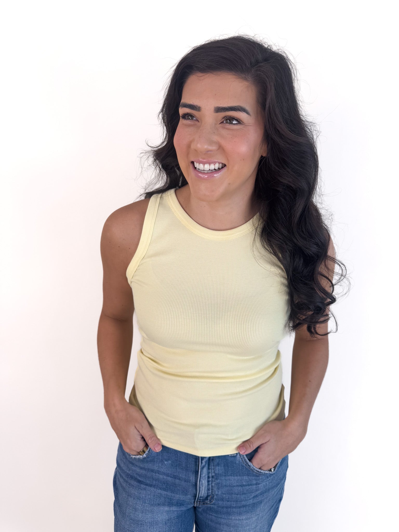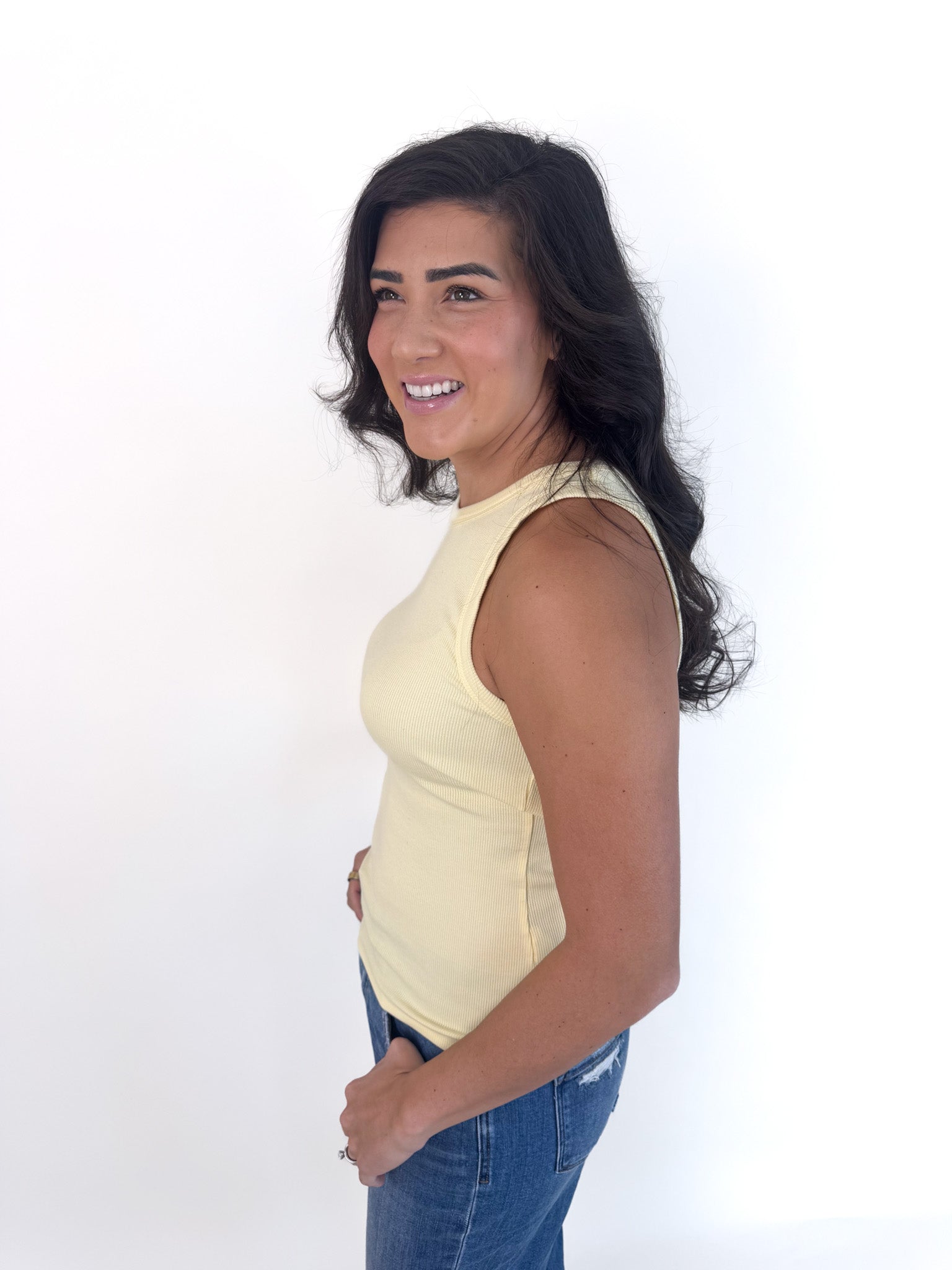 The Thread & Supply® Edlin Sleeveless Tank is a versatile layering piece designed with a soft ribbed knit and a classic crew neckline. Its modest fit makes it perfect for pairing under cardigans, jackets, or button-downs, while also standing on its own with denim or flowy skirts. A timeless essential, it’s the go-to base for effortless, everyday styling through every season.