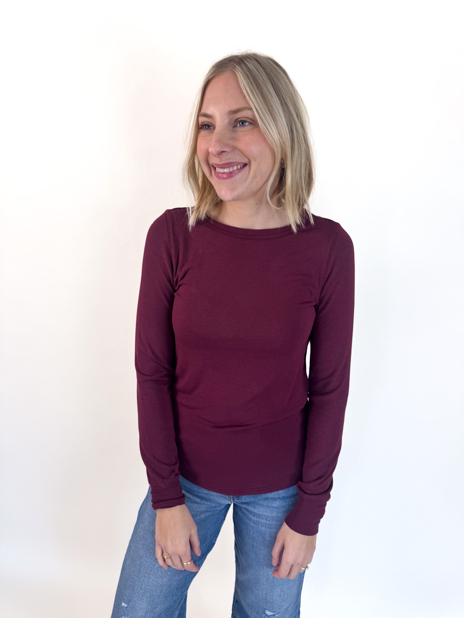 Stacy Long Sleeve Top - Maroon