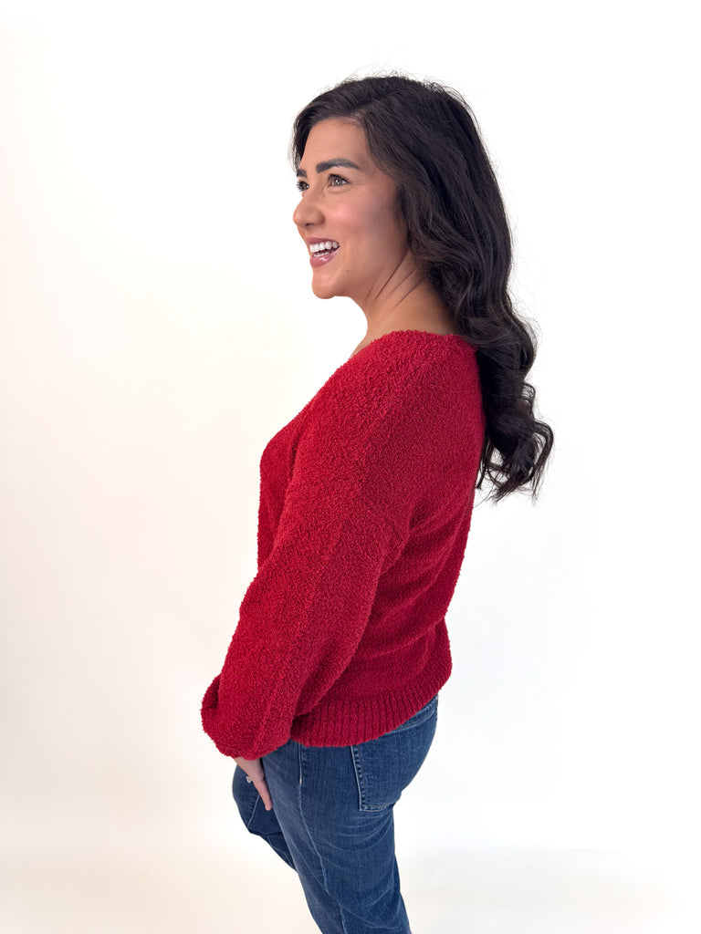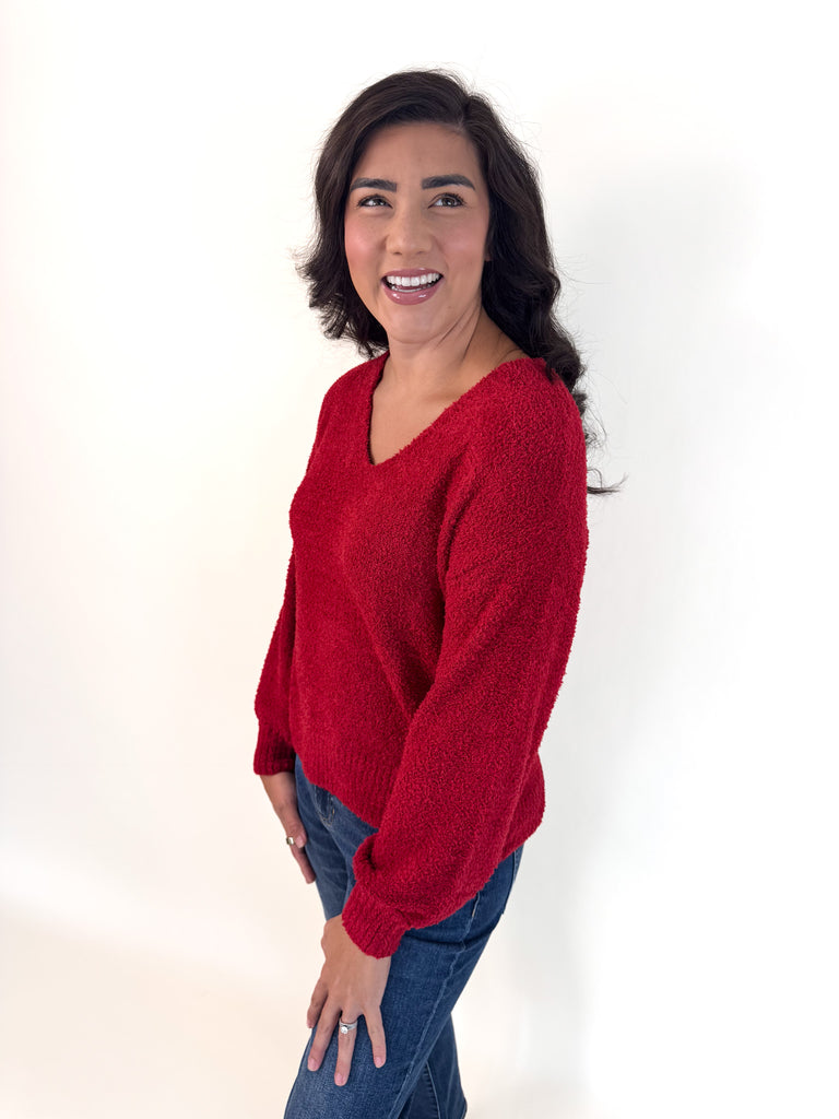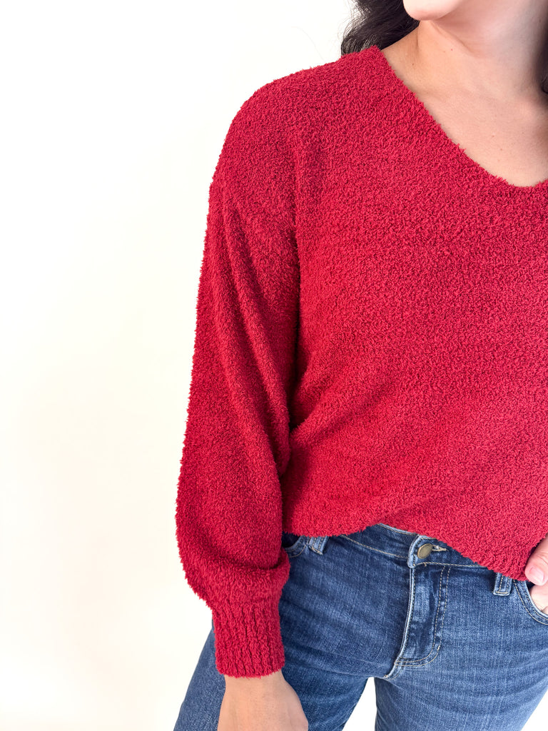 Cherry V-Neck Teddy Sweater