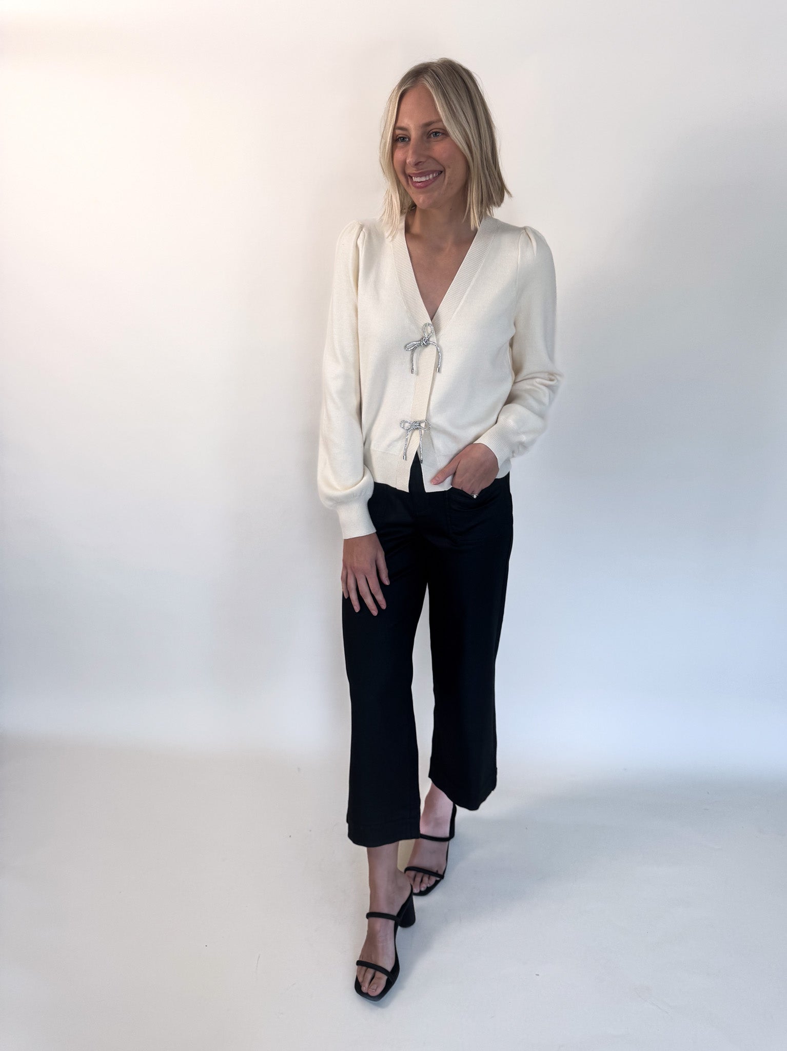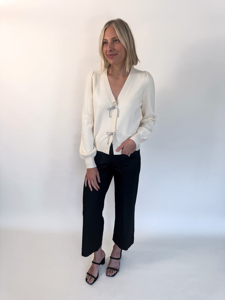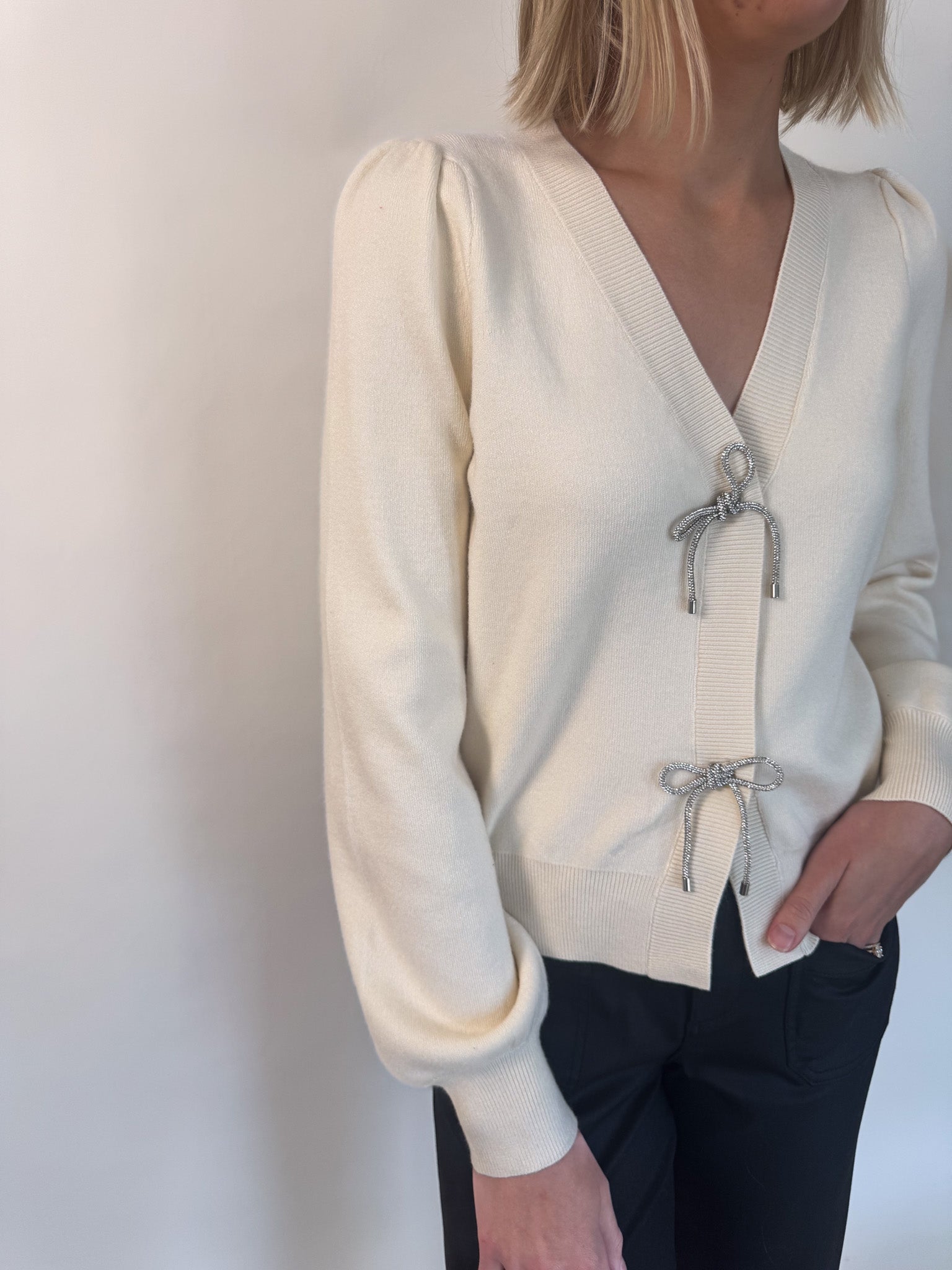 Soft, cozy, and perfectly feminine, this cardigan blends classic elegance with festive flair.