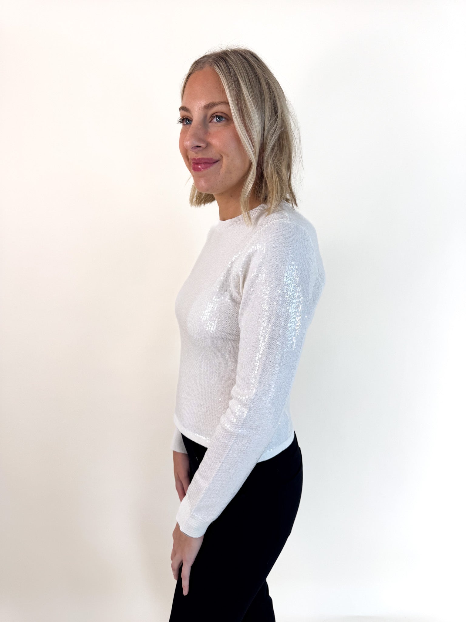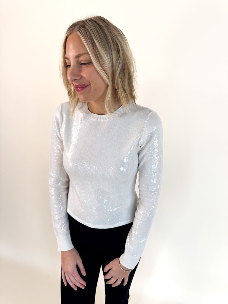 Step into the spotlight with this stunning monochromatic sequin blouse—where sleek sophistication meets show-stopping shine.