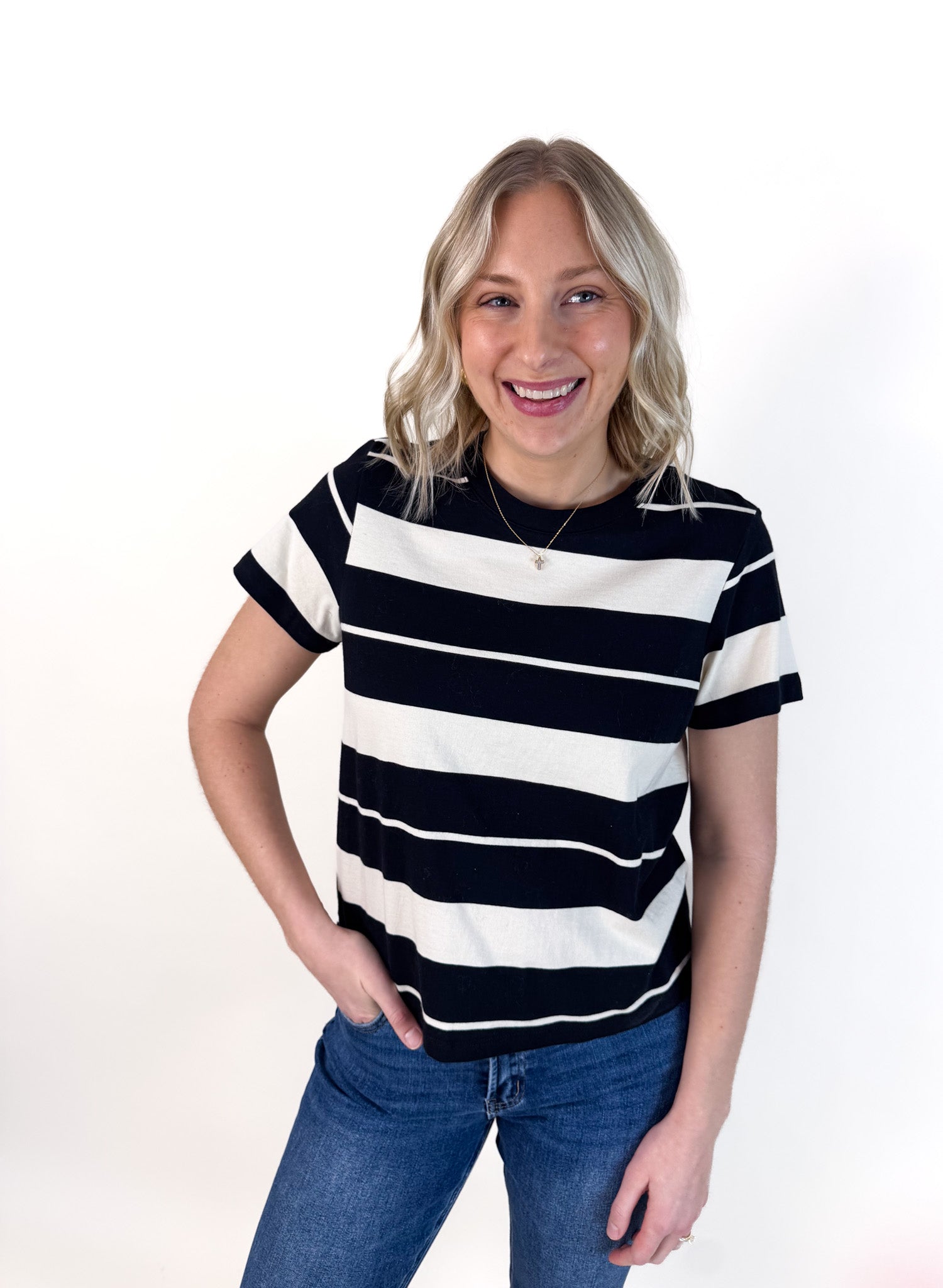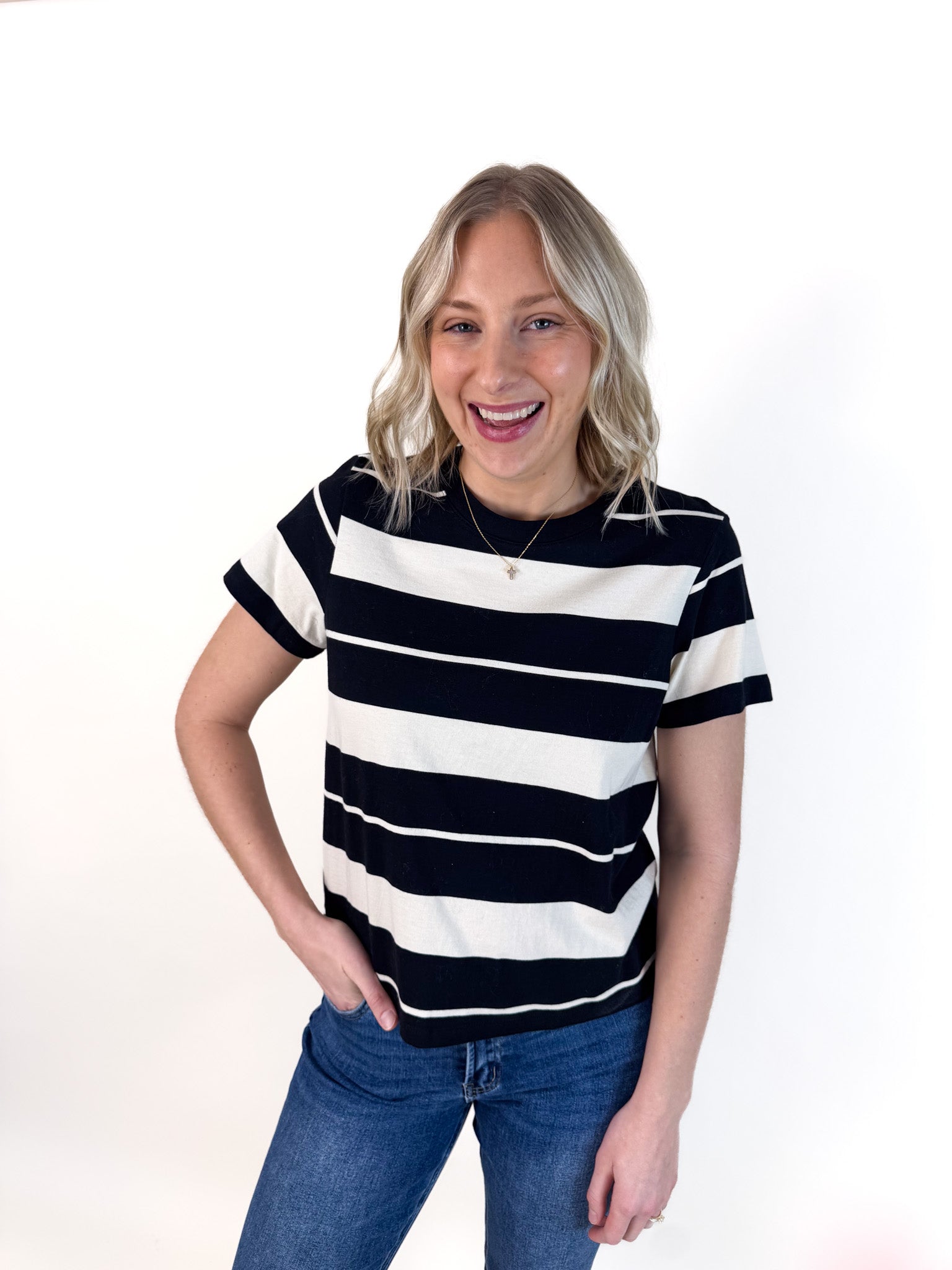 Meet your new go-to tee—a striped crewneck that's anything but boring. With those classic vanilla stripes, it's the kind of piece that plays well with literally everything in your closet.